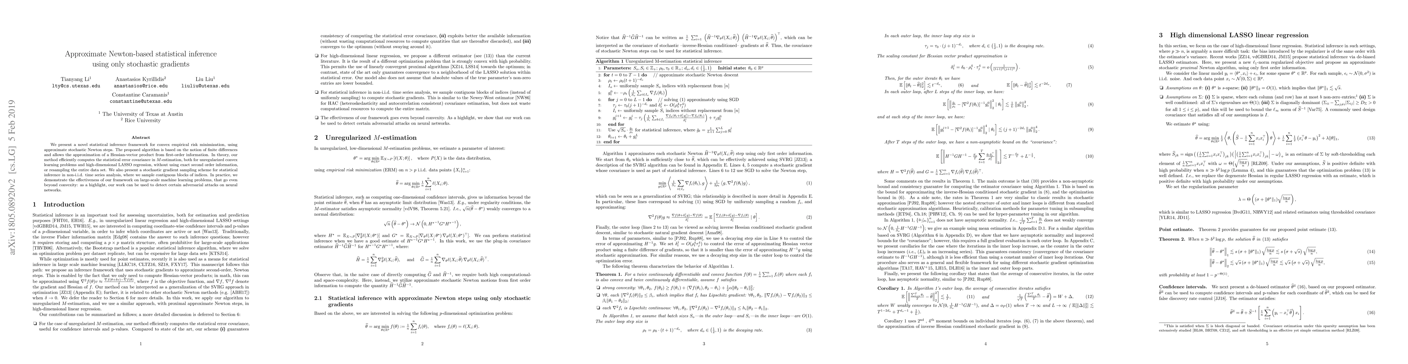 A new statistical inference framework uses approximate stochastic Newton steps to efficiently compute error covariance without exact second-order information, applicable to convex learning problems and non-i.i.d. time series analysis.