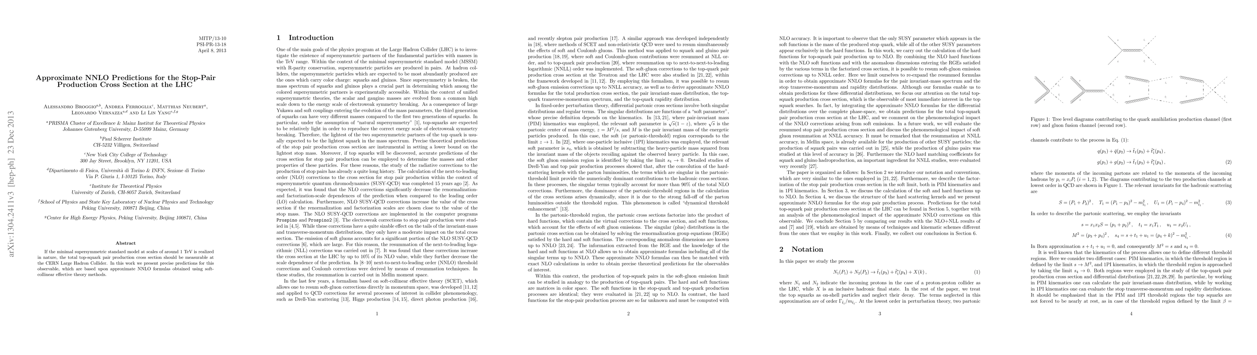 If the minimal supersymmetric standard model at scales of around 1 TeV is realized in nature, the total top-squark pair production cross section should be measurable at the CERN Large Hadron Collider. In this work we present precise predictions for this observable, which are based upon approximate NNLO formulas obtained using soft-collinear effective theory methods.