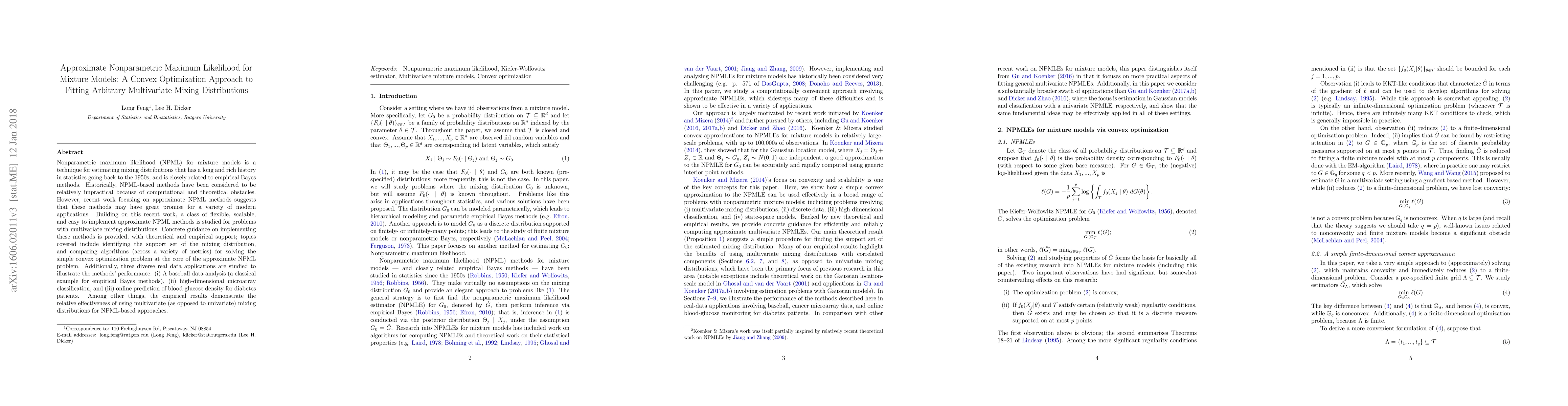 This paper develops scalable approximate nonparametric maximum likelihood methods for mixture models using convex optimization, providing practical solutions to the computational challenges historically associated with these methods. The study includes real-world applications in baseball data analysis, high-dimensional microarray classification, and diabetes patient blood-glucose prediction, demonstrating the effectiveness of multivariate mixing distributions.