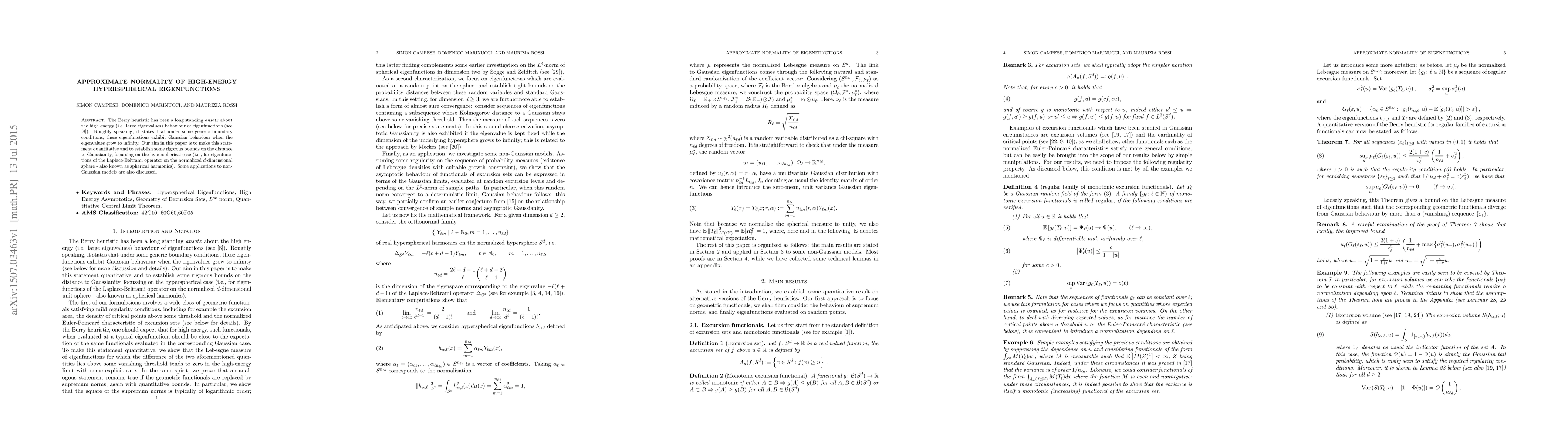 This paper quantitatively establishes rigorous bounds on the Gaussianity of high-energy eigenfunctions, specifically hyperspherical eigenfunctions (spherical harmonics), validating the Berry heuristic. Applications to non-Gaussian models are also explored.