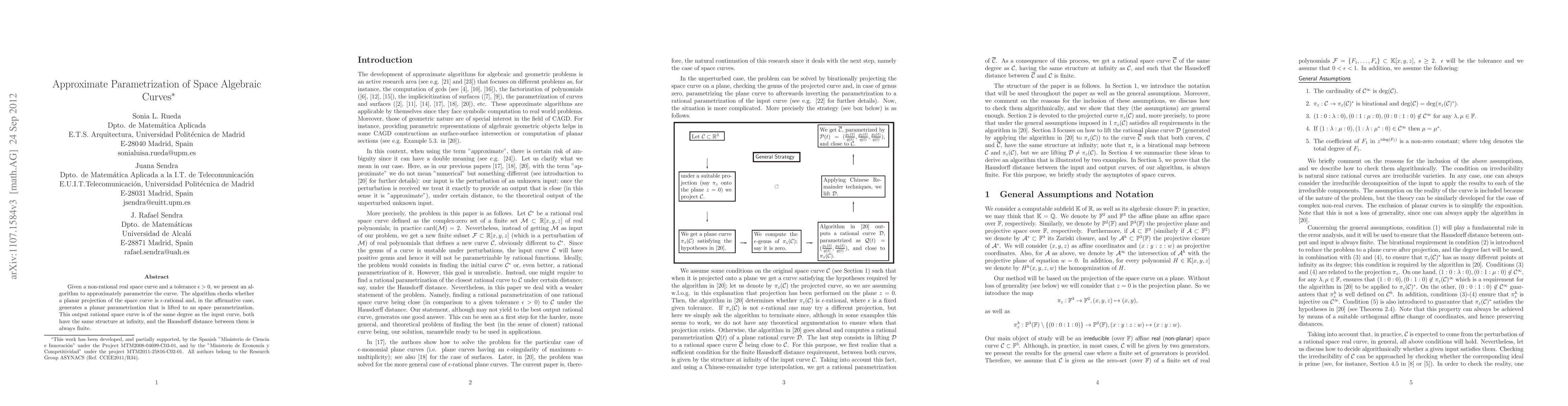 Given a non-rational real space curve and a tolerance $\epsilon>0$, we present an algorithm to approximately parametrize the curve. The algorithm checks whether a planar projection of the space curve is $\epsilon$-rational and, in the affirmative case, generates a planar parametrization that is lifted to an space parametrization. This output rational space curve is of the same degree as the input curve, both have the same structure at infinity, and the Hausdorff distance between them is always finite.