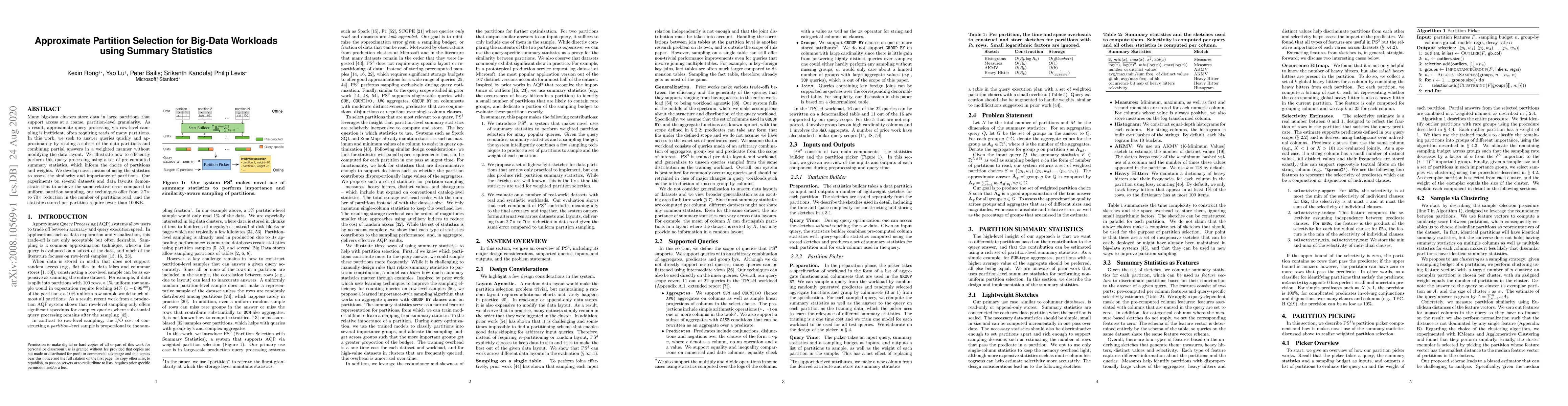 Many big-data clusters store data in large partitions that support access at a coarse, partition-level granularity. As a result, approximate query processing via row-level sampling is inefficient, often requiring reads of many partitions. In this work, we seek to answer queries quickly and approximately by reading a subset of the data partitions and combining partial answers in a weighted manner without modifying the data layout. We illustrate how to efficiently perform this query processing using a set of pre-computed summary statistics, which inform the choice of partitions and weights. We develop novel means of using the statistics to assess the similarity and importance of partitions. Our experiments on several datasets and data layouts demonstrate that to achieve the same relative error compared to uniform partition sampling, our techniques offer from 2.7$\times$ to $70\times$ reduction in the number of partitions read, and the statistics stored per partition require fewer than 100KB.