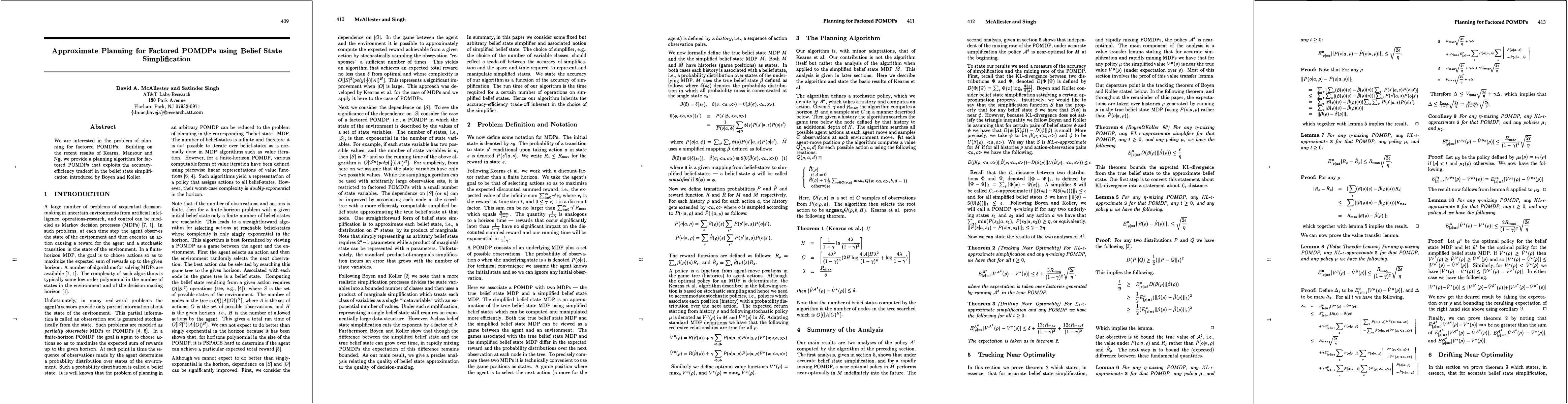 This paper presents a planning algorithm for factored POMDPs that leverages belief state simplification to balance accuracy and efficiency, building on prior work by Kearns, Mansour, and Ng. The approach aims to improve planning in complex, factored POMDP environments.