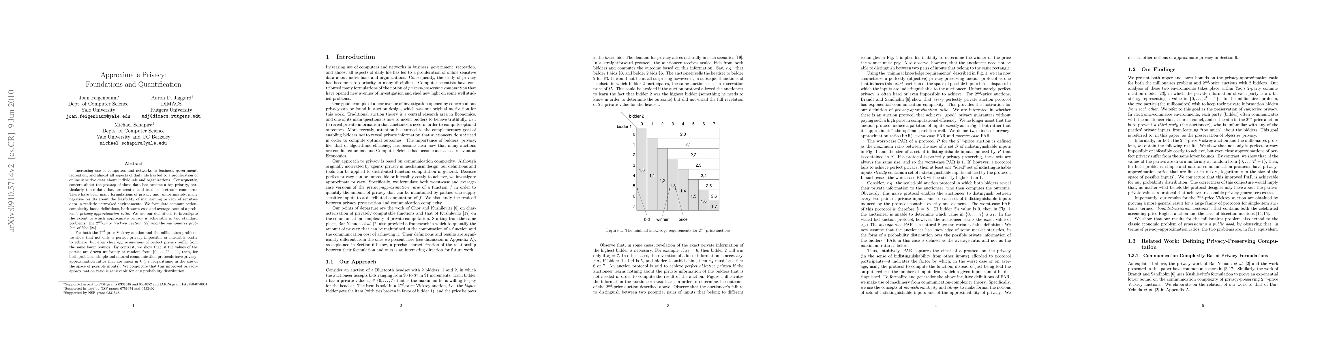 Increasing use of computers and networks in business, government, recreation, and almost all aspects of daily life has led to a proliferation of online sensitive data about individuals and organizations. Consequently, concern about the privacy of these data has become a top priority, particularly those data that are created and used in electronic commerce. There have been many formulations of privacy and, unfortunately, many negative results about the feasibility of maintaining privacy of sensitive data in realistic networked environments. We formulate communication-complexity-based definitions, both worst-case and average-case, of a problem's privacy-approximation ratio. We use our definitions to investigate the extent to which approximate privacy is achievable in two standard problems: the second-price Vickrey auction and the millionaires problem of Yao. For both the second-price Vickrey auction and the millionaires problem, we show that not only is perfect privacy impossible or infeasibly costly to achieve, but even close approximations of perfect privacy suffer from the same lower bounds. By contrast, we show that, if the values of the parties are drawn uniformly at random from {0,...,2^k-1}, then, for both problems, simple and natural communication protocols have privacy-approximation ratios that are linear in k (i.e., logarithmic in the size of the space of possible inputs). We conjecture that this improved privacy-approximation ratio is achievable for any probability distribution.