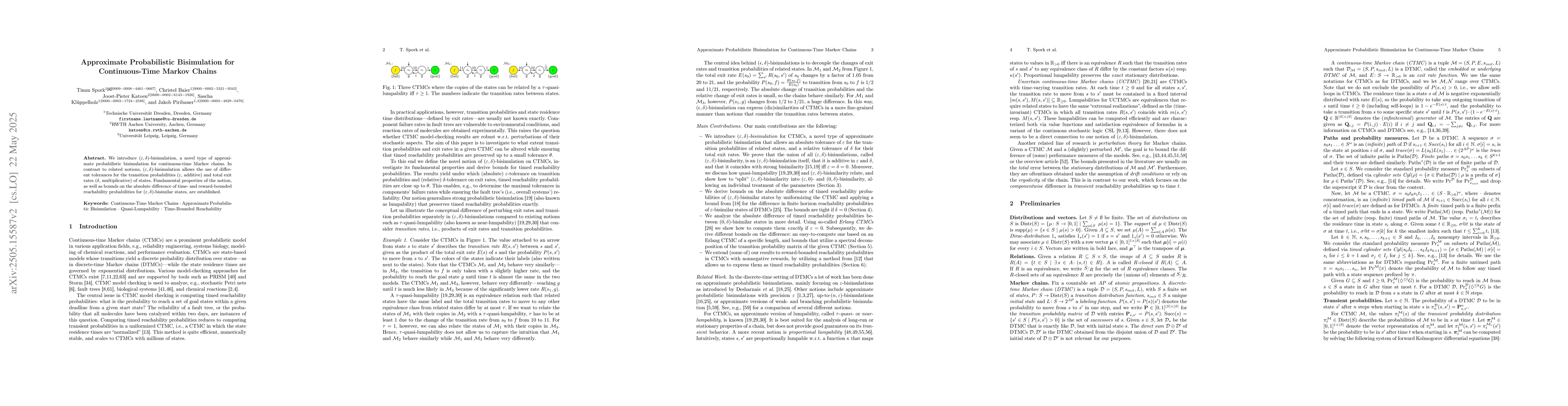 The paper introduces $(\varepsilon, \delta)$-bisimulation, an approximate probabilistic bisimulation method tailored for continuous-time Markov chains, allowing distinct tolerances for transition probabilities and total exit rates.