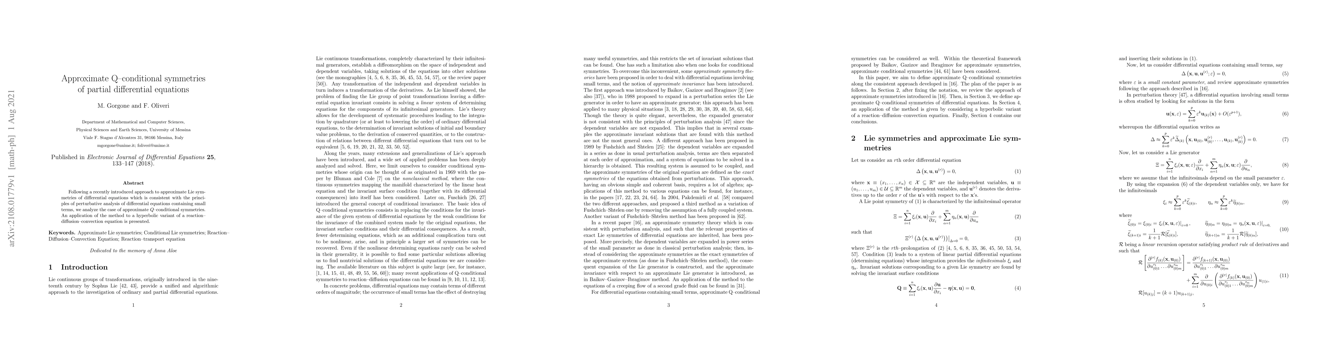 This paper develops a method for finding approximate $Q$--conditional symmetries in partial differential equations, consistent with perturbative analysis. It applies this method to a hyperbolic reaction-diffusion-convection equation, demonstrating its practical utility.