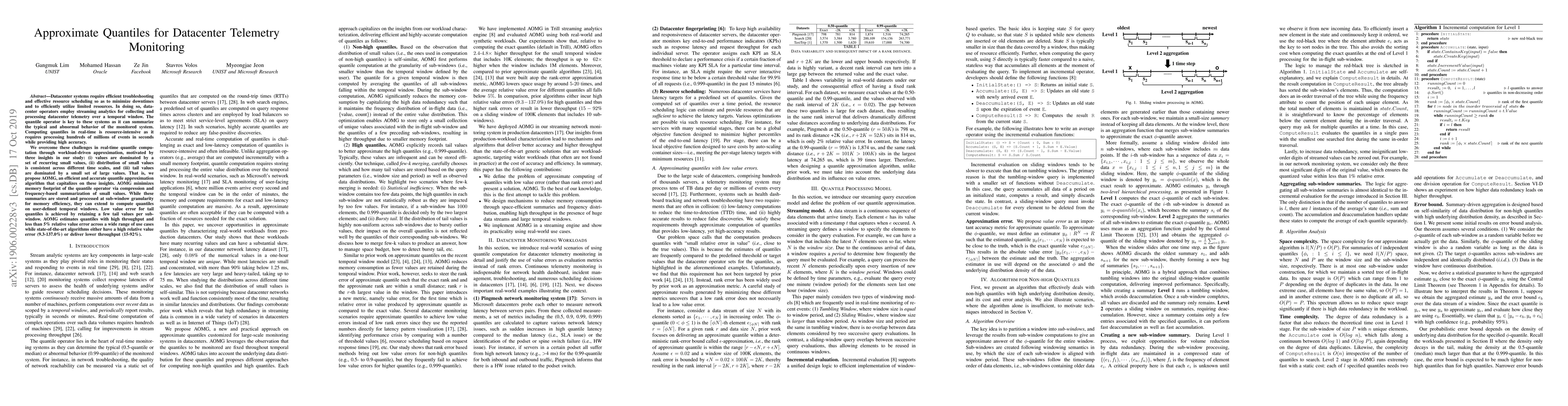 This paper proposes AOMG, an efficient algorithm for real-time quantile computation in datacenter telemetry monitoring, achieving high accuracy with low memory footprint and relative value error.