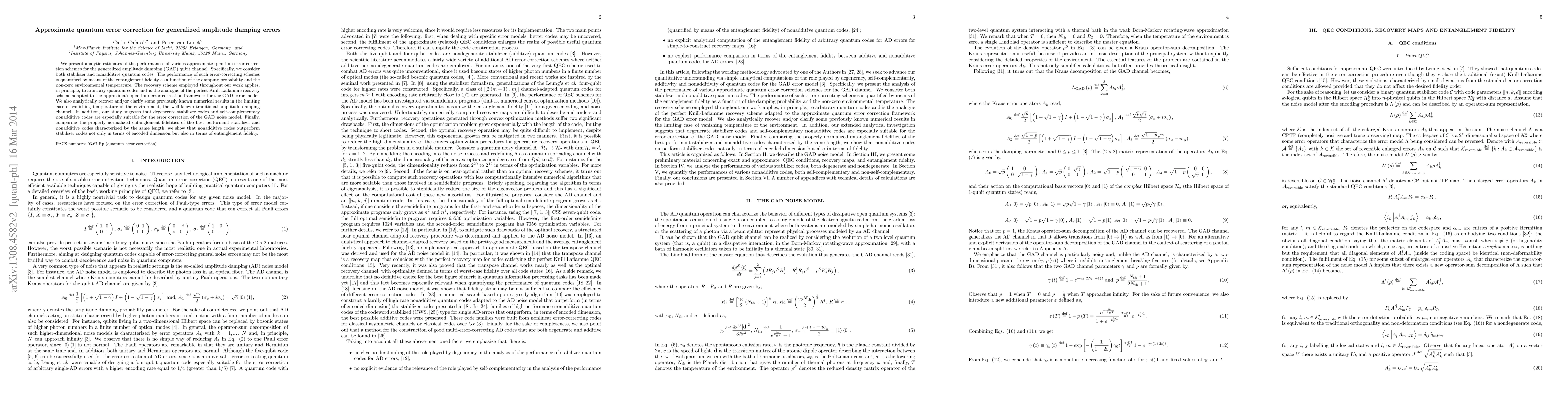This paper evaluates the performance of various approximate quantum error correction schemes for generalized amplitude damping errors, finding that nonadditive codes outperform stabilizer codes in terms of both encoded dimension and entanglement fidelity. The study also clarifies previously known numerical results for the traditional amplitude damping channel.