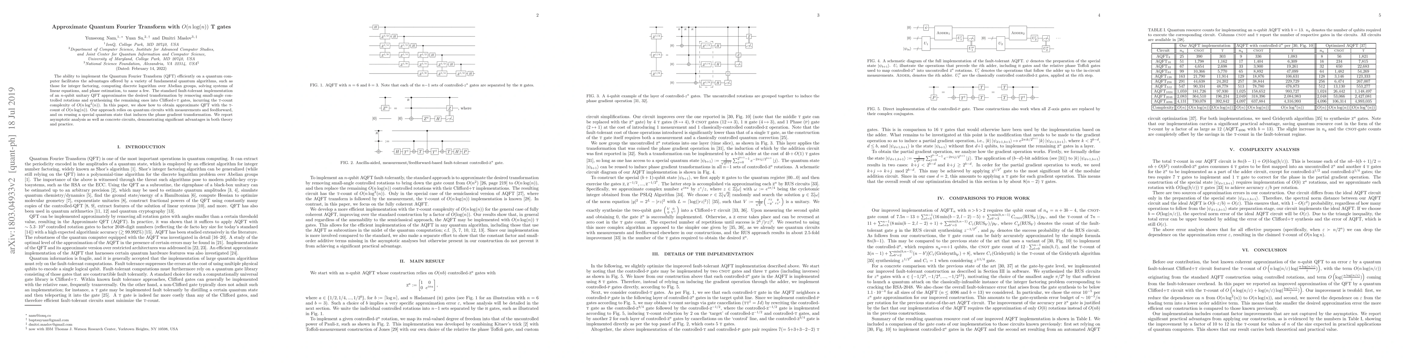 The ability to implement the Quantum Fourier Transform (QFT) efficiently on a quantum computer facilitates the advantages offered by a variety of fundamental quantum algorithms, such as those for integer factoring, computing discrete logarithm over Abelian groups, solving systems of linear equations, and phase estimation, to name a few. The standard fault-tolerant implementation of an $n$-qubit unitary QFT approximates the desired transformation by removing small-angle controlled rotations and synthesizing the remaining ones into Clifford+T gates, incurring the T-count complexity of $O(n \log^2(n))$. In this paper, we show how to obtain approximate QFT with the T-count of $O(n \log(n))$. Our approach relies on quantum circuits with measurements and feedforward, and on reusing a special quantum state that induces the phase gradient transformation. We report asymptotic analysis as well as concrete circuits, demonstrating significant advantages in both theory and practice.