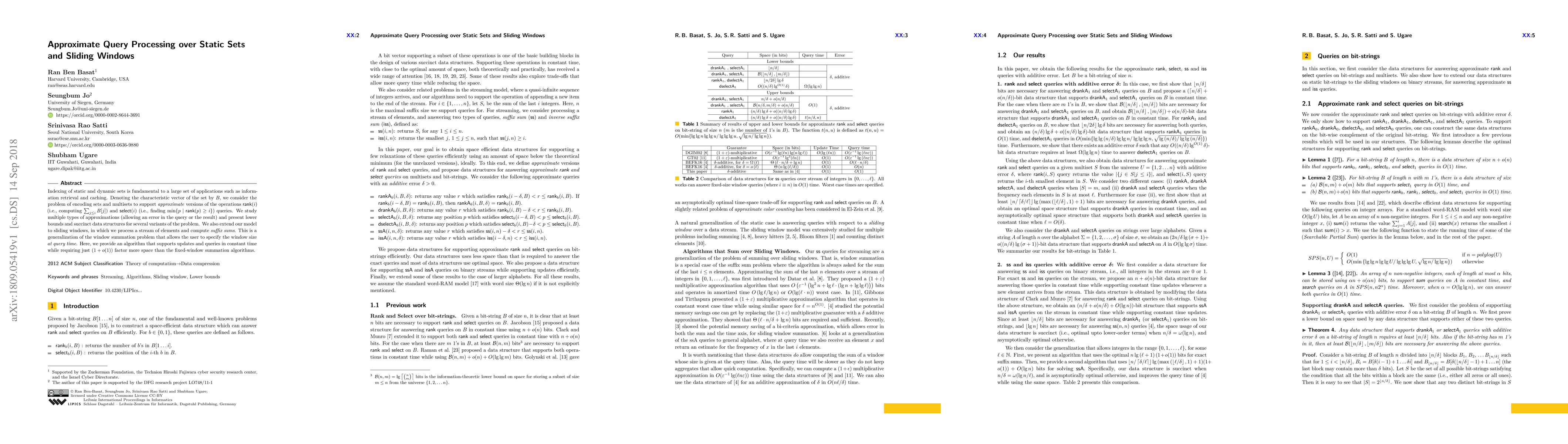 Researchers developed a data structure that enables fast querying of approximate versions of set operations with low error rates, extending to sliding window processing with constant-time updates and queries. The solution offers improved efficiency compared to existing fixed-window summation algorithms.