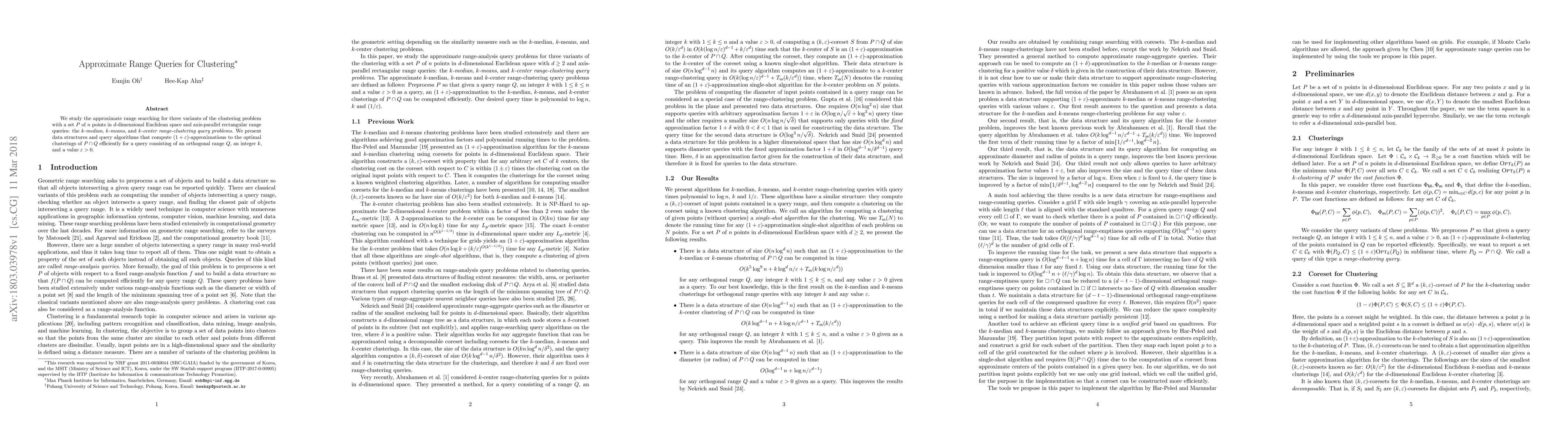 This paper explores efficient data structures for approximate range searching in clustering problems, specifically addressing $k$-median, $k$-means, and $k$-center queries within a set of $n$ points in $d$-dimensional space. It presents algorithms that compute $(1+\varepsilon)$-approximations to optimal clusterings for axis-parallel rectangular queries.