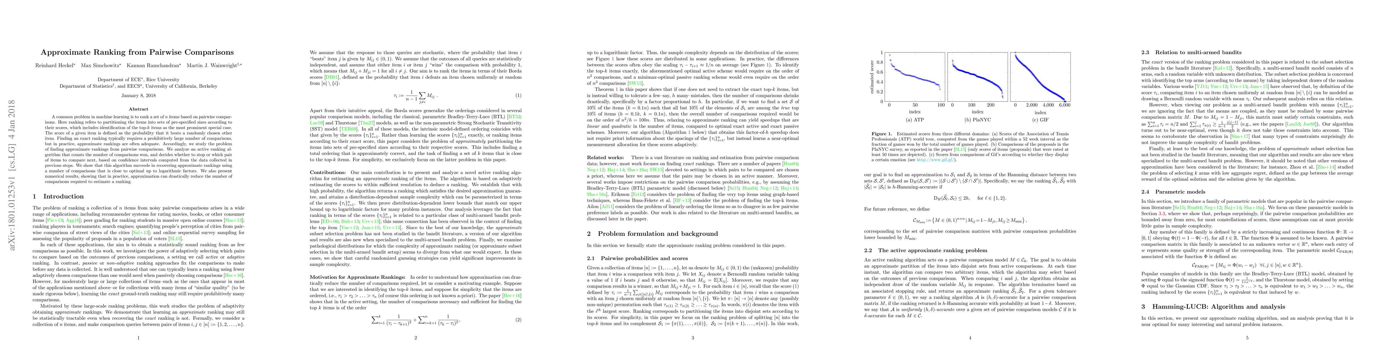 This paper investigates an active ranking algorithm for approximating rankings from pairwise comparisons, demonstrating its efficiency in reducing the number of comparisons needed compared to exact methods. The algorithm uses confidence intervals to decide when to stop or which pair to compare next, achieving near-optimal results in terms of comparison count.