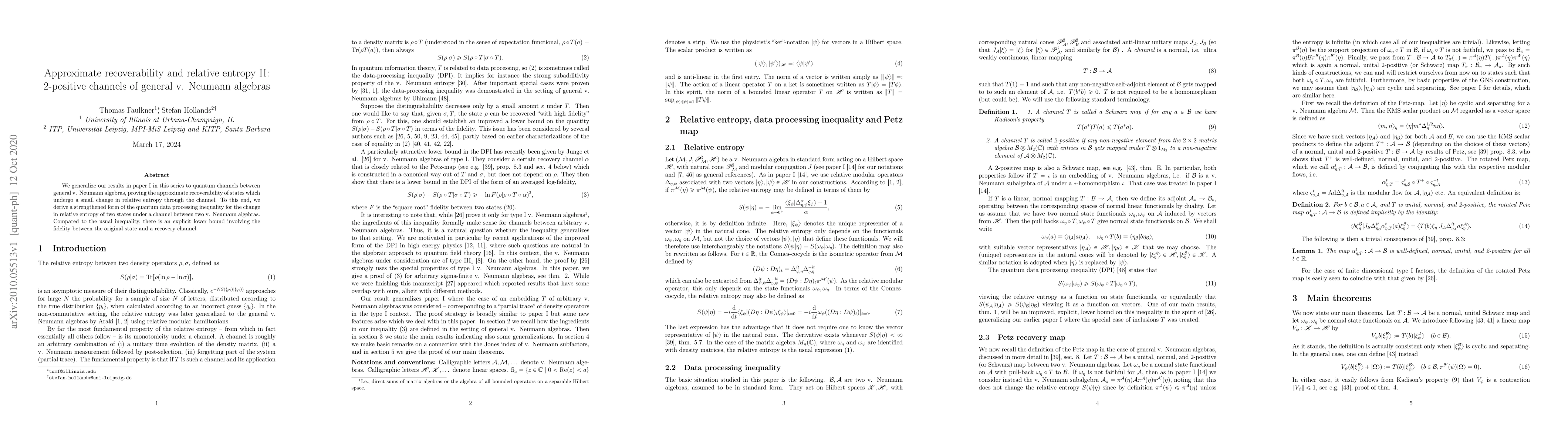 This paper extends the findings of its predecessor to quantum channels between general von Neumann algebras, demonstrating the approximate recoverability of states with small relative entropy changes through the channel. It introduces a strengthened quantum data processing inequality with an explicit lower bound involving fidelity for state recovery.
