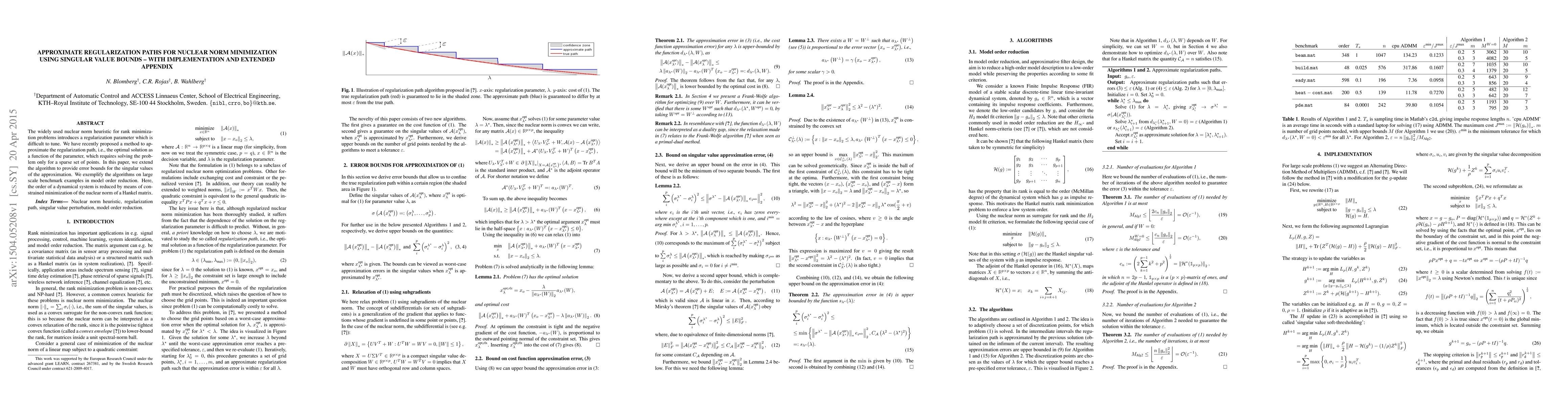 This paper proposes an algorithm to approximate the regularization path for nuclear norm minimization, providing error bounds for singular value approximations. It demonstrates the method's effectiveness in large-scale model order reduction for dynamical systems.