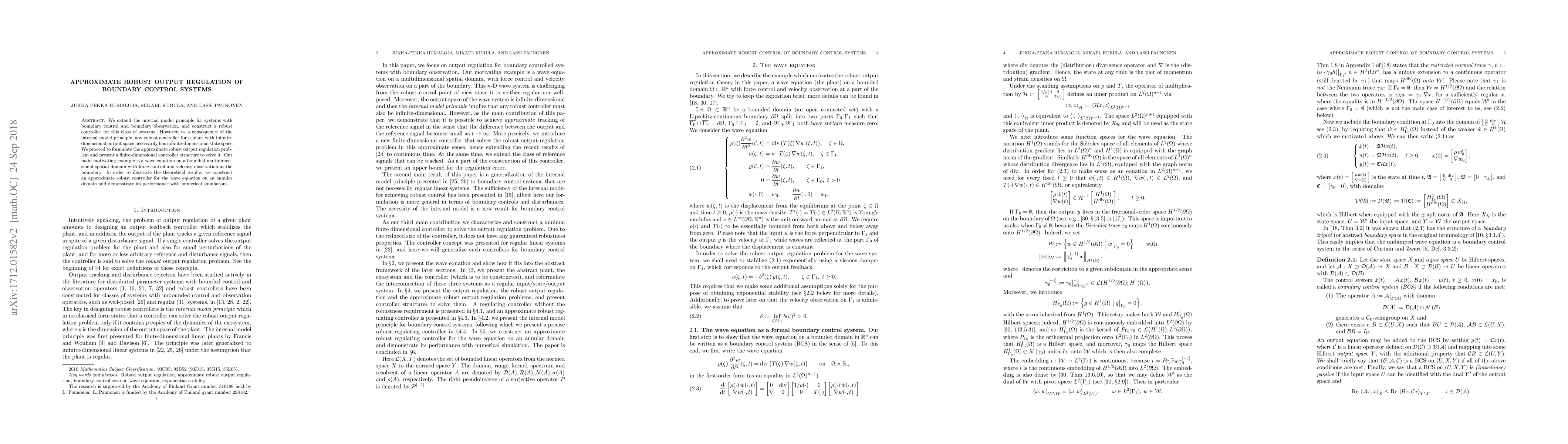 We extend the internal model principle for systems with boundary control and boundary observation, and construct a robust controller for this class of systems. However, as a consequence of the internal model principle, any robust controller for a plant with infinite-dimensional output space necessarily has infinite-dimensional state space. We proceed to formulate the approximate robust output regulation problem and present a finite-dimensional controller structure to solve it. Our main motivating example is a wave equation on a bounded multidimensional spatial domain with force control and velocity observation at the boundary. In order to illustrate the theoretical results, we construct an approximate robust controller for the wave equation on an annular domain and demonstrate its performance with numerical simulations.