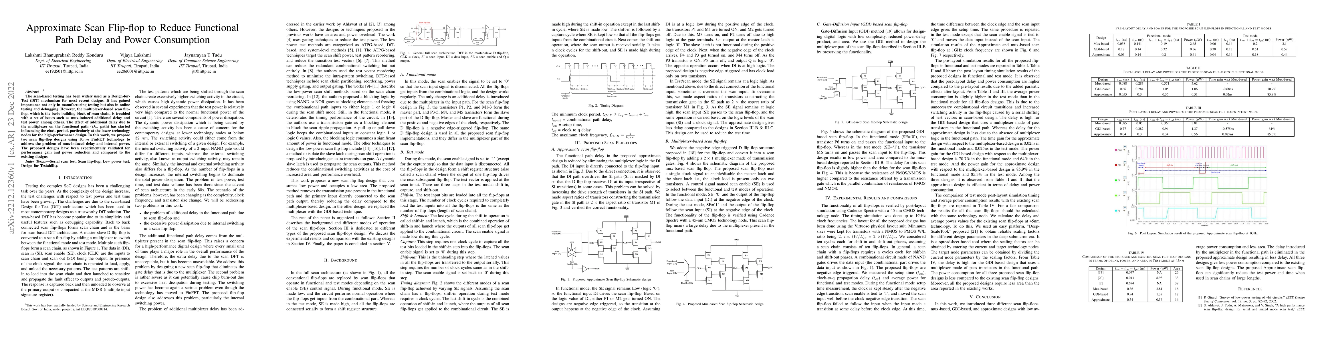 This paper proposes two innovative scan flip-flop designs using 10nm FinFET technology to reduce functional path delay and power consumption caused by multiplexer-based scan flip-flops. Experimental validation shows performance improvement and power reduction compared to existing designs.