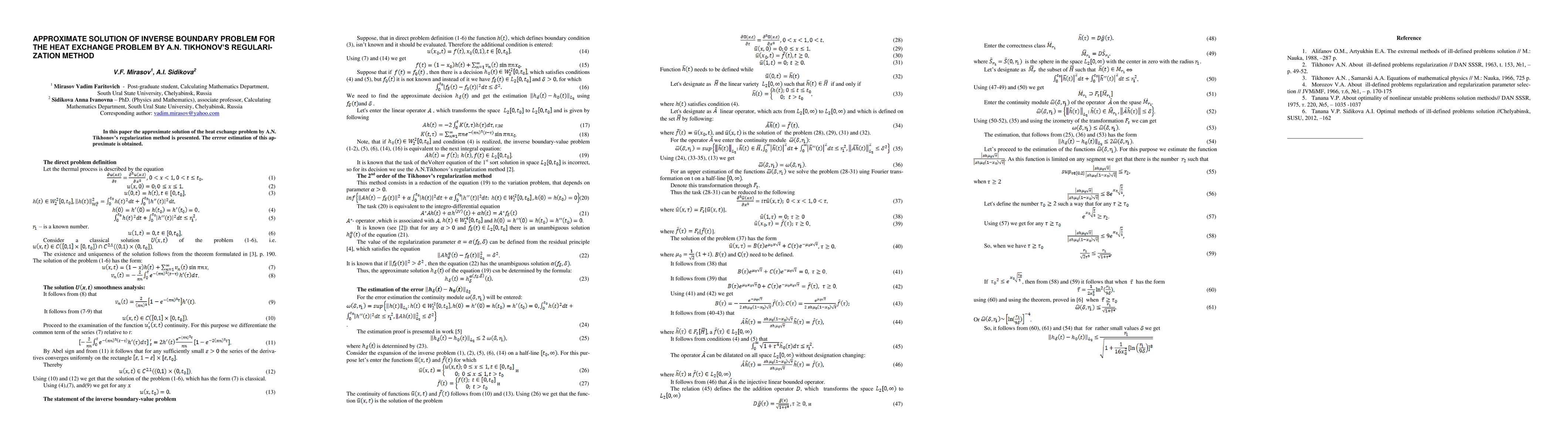 In this paper the approximate solution of the heat exchange problem by A.N. Tikhonov regularization method is presented. The errror estimation of this approximate is obtained.