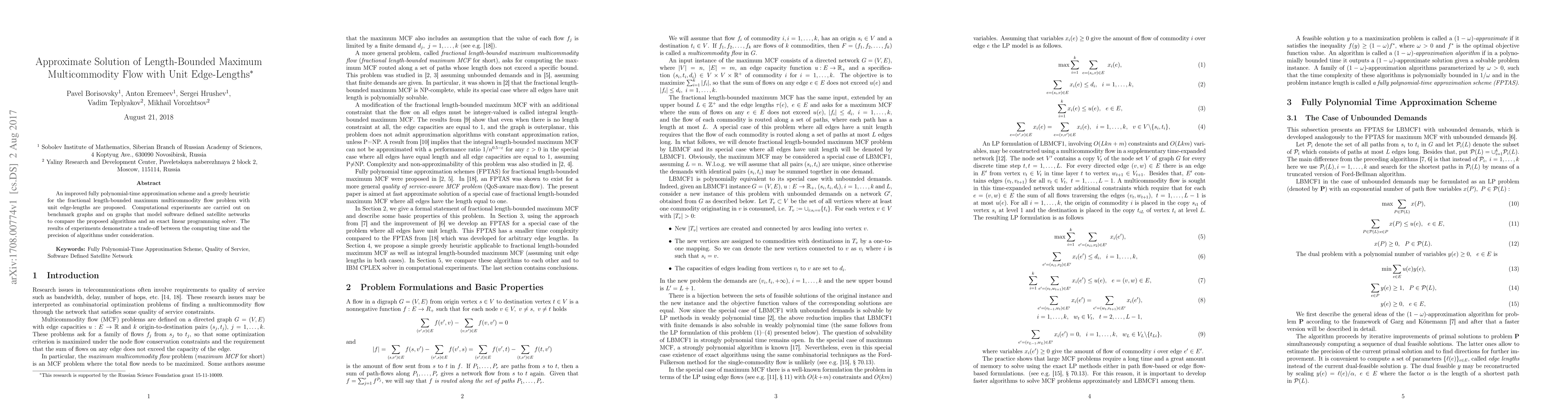 An improved fully polynomial-time approximation scheme and a greedy heuristic for the fractional length-bounded maximum multicommodity flow problem with unit edge-lengths are proposed. Computational experiments are carried out on benchmark graphs and on graphs that model software defined satellite networks to compare the proposed algorithms and an exact linear programming solver. The results of experiments demonstrate a trade-off between the computing time and the precision of algorithms under consideration.