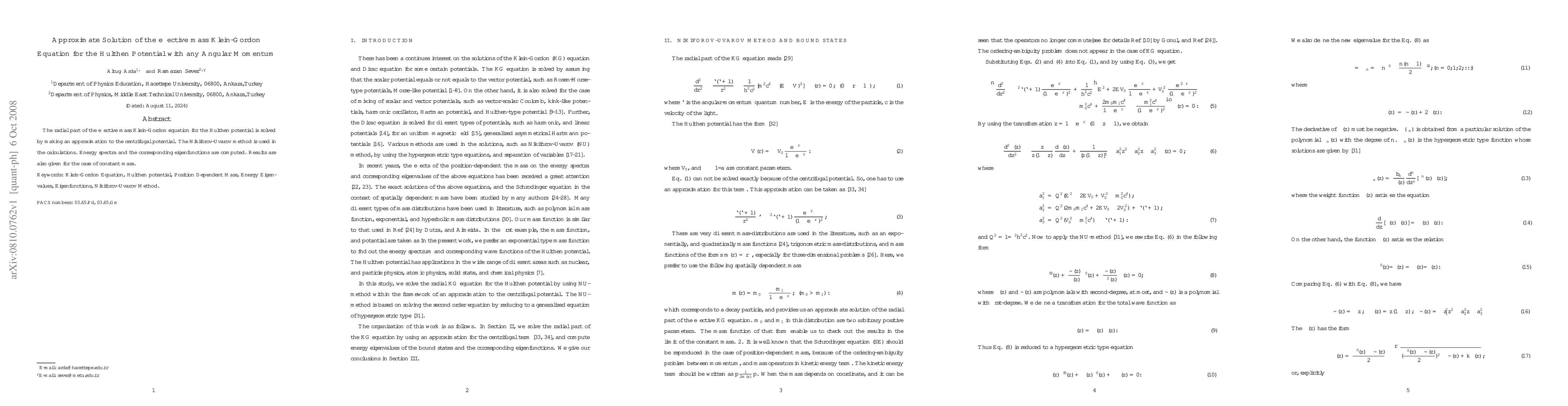 This paper solves the radial effective mass Klein-Gordon equation for the Hulthen potential using the Nikiforov-Uvarov method, approximating the centrifugal potential. It computes energy spectra and eigenfunctions for various angular momenta, including results for constant mass scenarios.