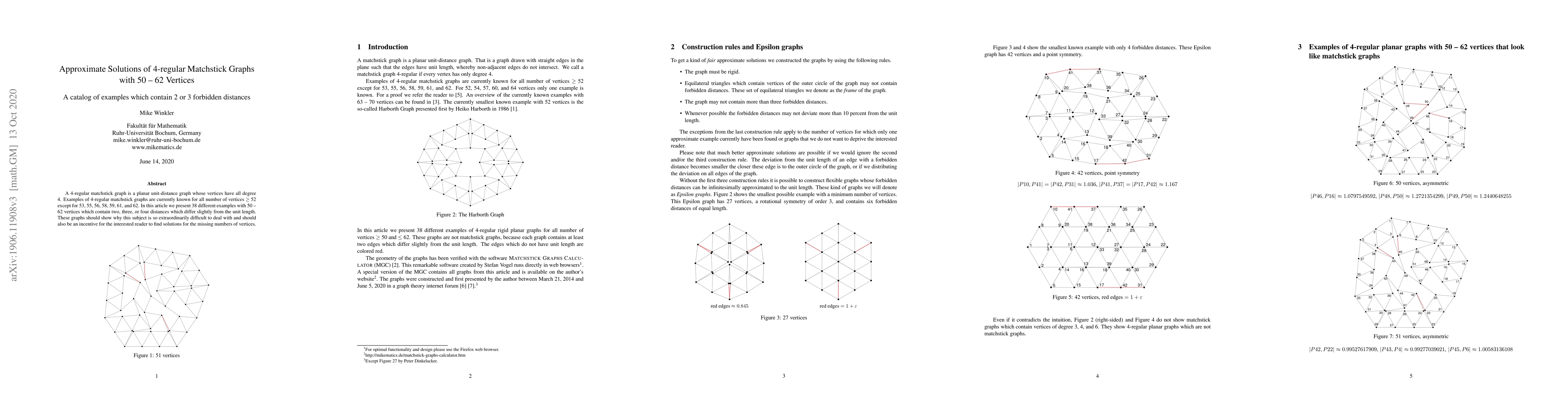 This paper presents 38 examples of 4-regular matchstick graphs with 50-62 vertices, showcasing slight variations in distance from the unit length. It highlights the complexity of finding such graphs and encourages further research to complete the series for missing vertex counts.