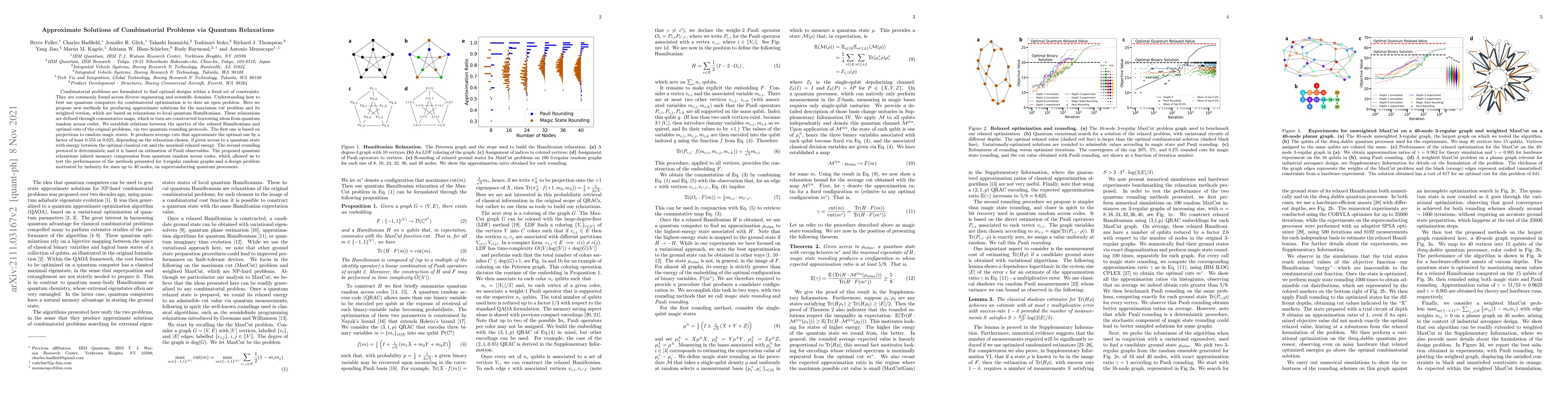 New methods for approximate solutions of combinatorial problems like maximum cut using local quantum Hamiltonians have been proposed, offering a 0.555 to 0.625 approximation factor.