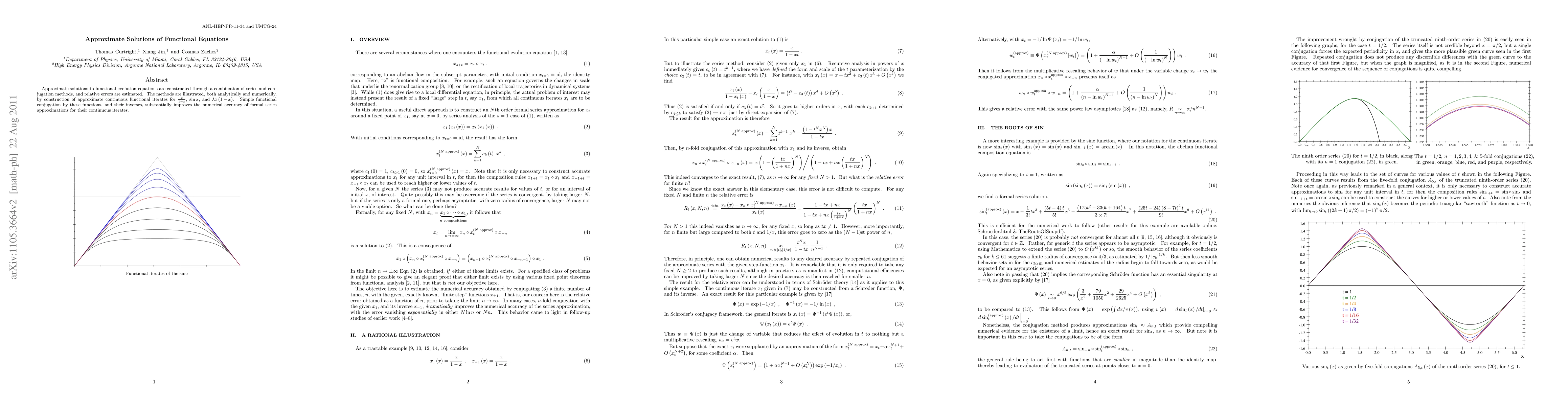 Approximate solutions to functional evolution equations are constructed through a combination of series and conjugation methods, and relative errors are estimated. The methods are illustrated, both analytically and numerically, by construction of approximate continuous functional iterates for x/(1-x), sin x, and {\lambda}x(1-x). Simple functional conjugation by these functions, and their inverses, substantially improves the numerical accuracy of formal series approximations for their continuous iterates.