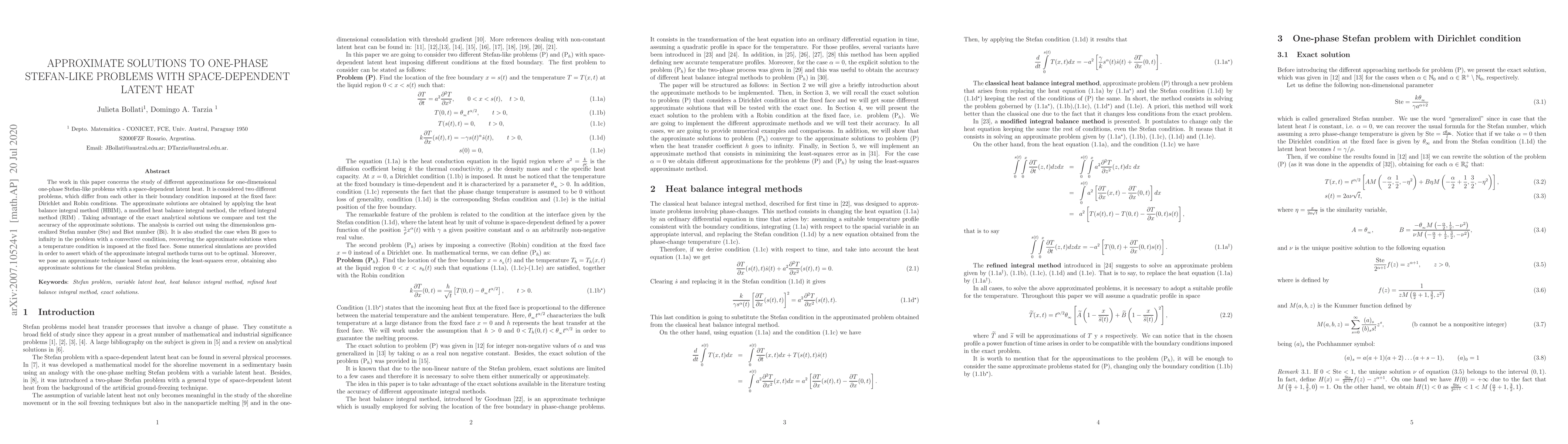 The work in this paper concerns the study of different approximations for one-dimensional one-phase Stefan-like problems with a space-dependent latent heat. It is considered two different problems, which differ from each other in their boundary condition imposed at the fixed face: Dirichlet and Robin conditions. The approximate solutions are obtained by applying the heat balance integral method (HBIM), a modified heat balance integral method, the refined integral method (RIM) . Taking advantage of the exact analytical solutions we compare and test the accuracy of the approximate solutions. The analysis is carried out using the dimensionless generalized Stefan number (Ste) and Biot number (Bi). It is also studied the case when Bi goes to infinity in the problem with a convective condition, recovering the approximate solutions when a temperature condition is imposed at the fixed face. Some numerical simulations are provided in order to assert which of the approximate integral methods turns out to be optimal. Moreover, we pose an approximate technique based on minimizing the least-squares error, obtaining also approximate solutions for the classical Stefan problem.