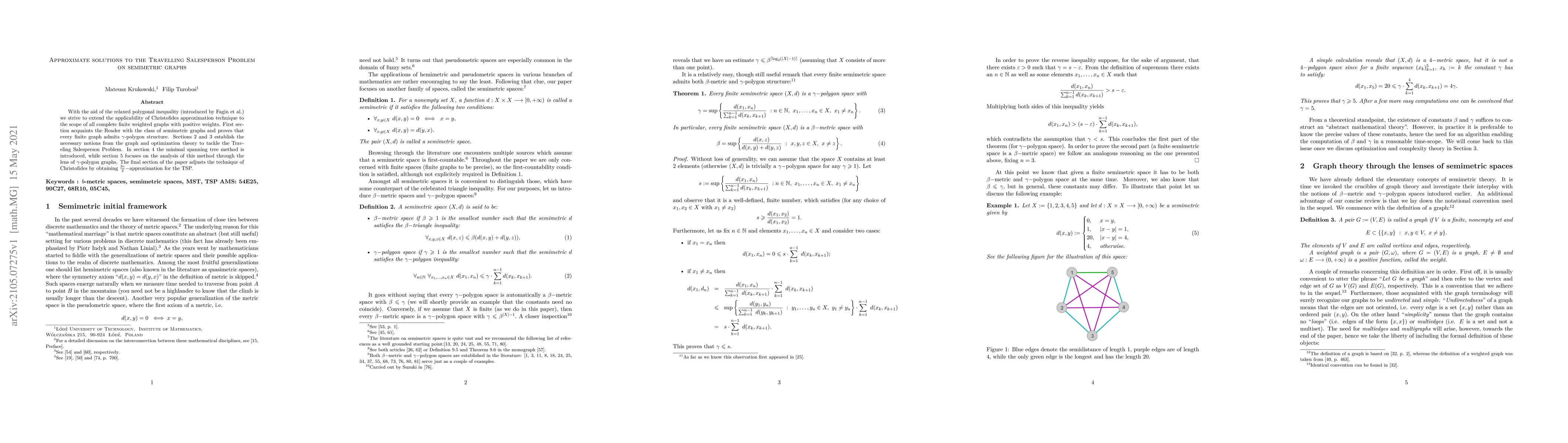 With the aid of the relaxed polygonal inequality (introduced by Fagin et al.) we strive to extend the applicability of Christofides approximation technique to the scope of all complete finite weighted graphs with positive weights. First section acquaints the Reader with the class of semimetric graphs and proves that every finite graph admits $\gamma$-polygon structure. Sections 2 and 3 establish the necessary notions from the graph and optimization theory to tackle the Traveling Salesperson Problem. In section 4 the minimal spanning tree method is introduced, while section 5 focuses on the analysis of this method through the lens of $\gamma$-polygon graphs. The final section of the paper adjusts the technique of Christofides by obtaining $\frac{3\gamma}{2}-$approximation for the TSP.