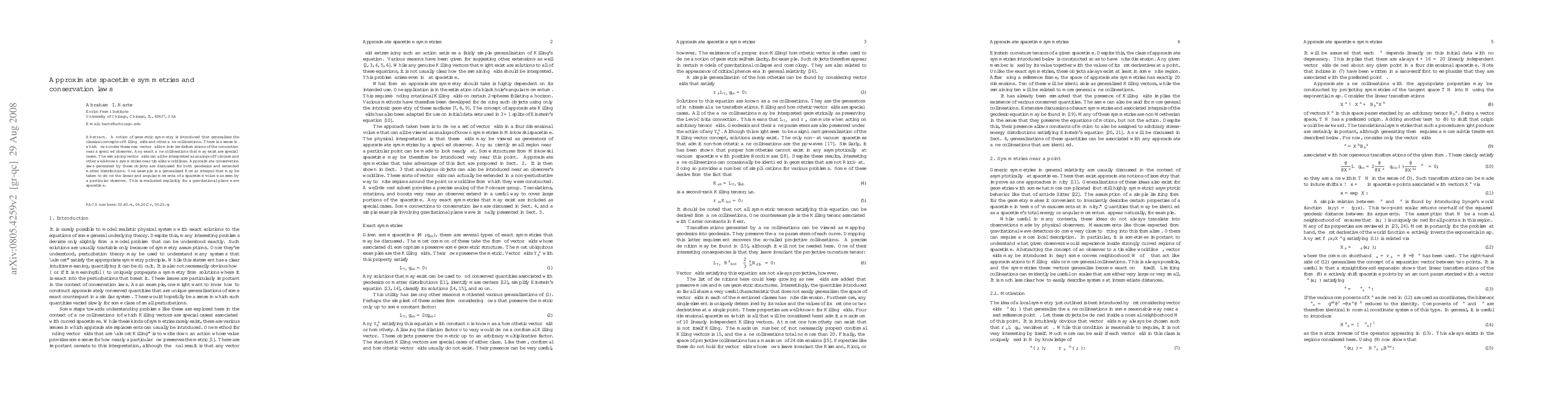 This paper introduces a generalized notion of geometric symmetry that extends classical Killing fields and affine collineations, proposing new vector fields that approximate spacetime symmetries and generate conservation laws for both geodesics and extended matter distributions. A specific example is a generalized Komar integral for defining momenta in a gravitational plane wave spacetime.