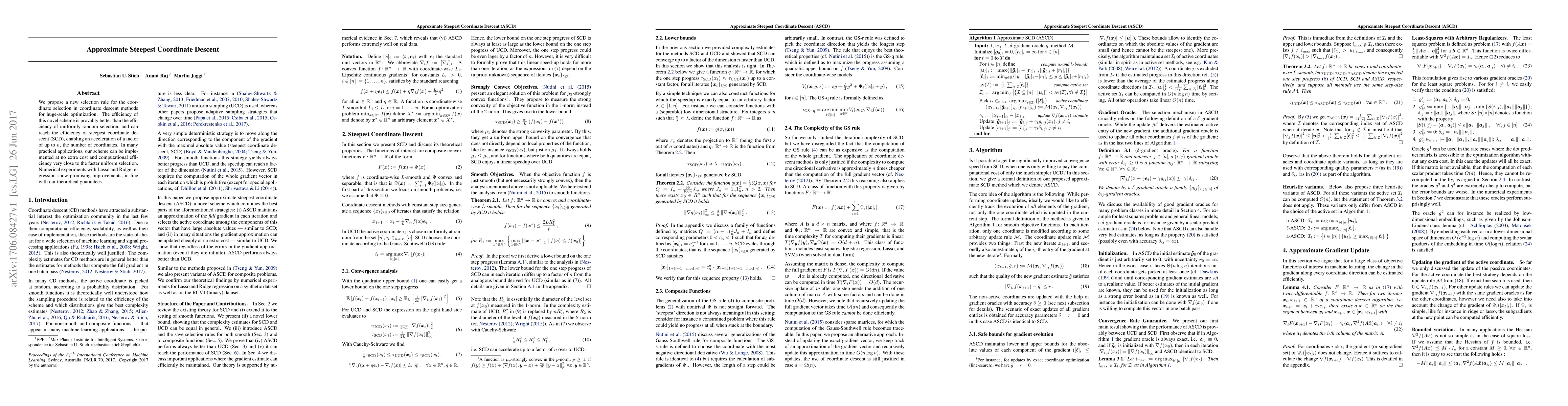 This paper introduces a new method for selecting coordinates in coordinate descent optimization, which is more efficient than random selection and can nearly match the performance of steepest coordinate descent, potentially speeding up convergence by a factor of $n$. Experimental results on Lasso and Ridge regression demonstrate promising improvements consistent with theoretical predictions.