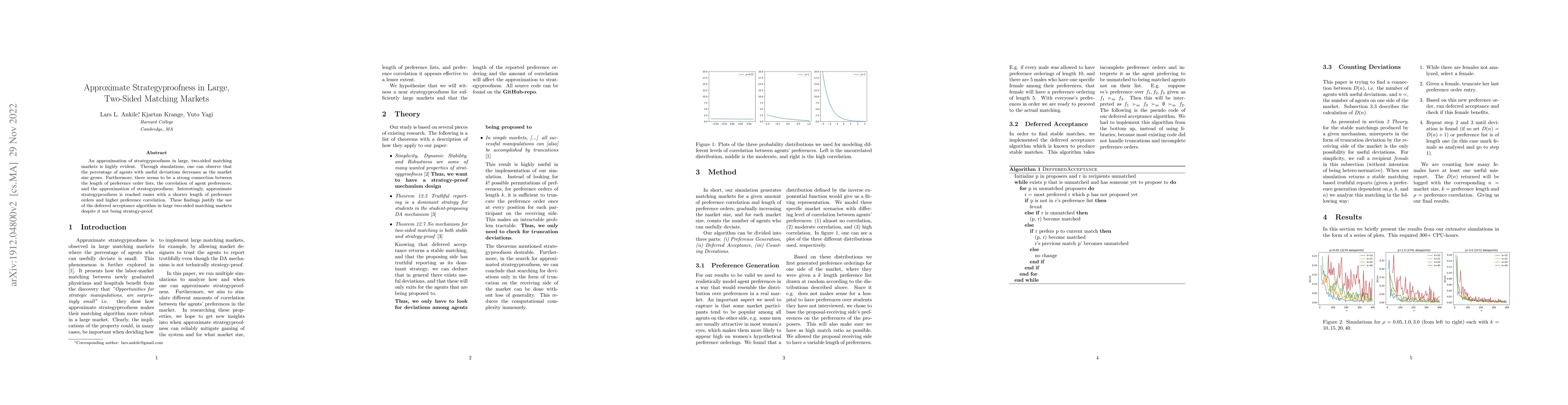 This paper explores approximate strategyproofness in large, two-sided matching markets, finding that as market size increases, the likelihood of useful deviations decreases. It concludes that shorter preference lists and higher preference correlation facilitate achieving approximate strategyproofness, justifying the use of the deferred acceptance algorithm in large markets.