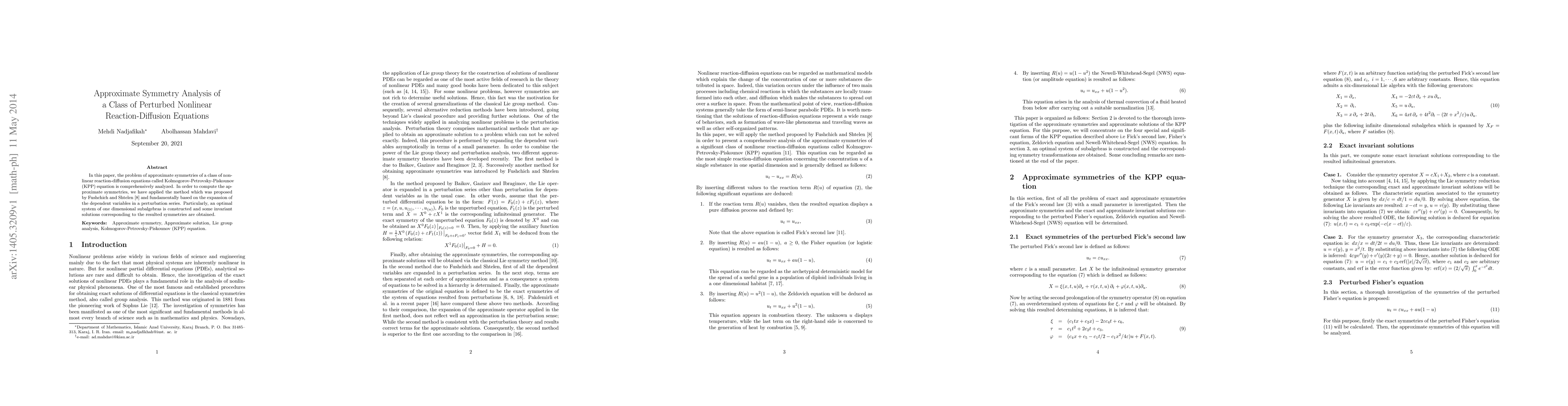 Researchers analyzed symmetries in a specific class of nonlinear reaction-diffusion equations, discovering invariant solutions based on a perturbation series expansion.