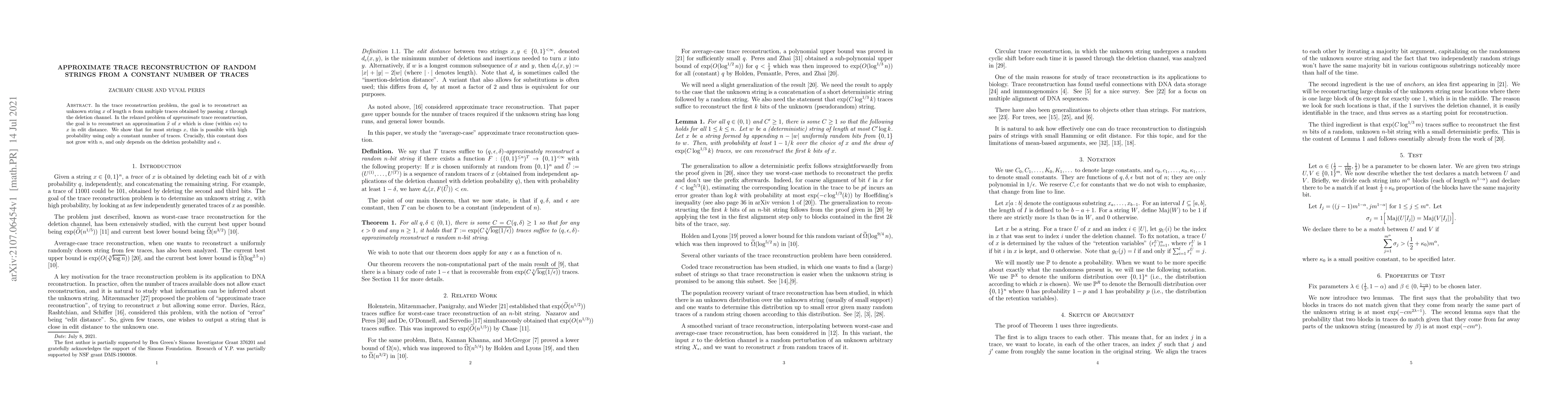 This paper addresses the approximate trace reconstruction problem, demonstrating that an approximation of an unknown string can be reconstructed with high probability from a constant number of traces, independent of the string length, provided the deletion probability and error tolerance are known.