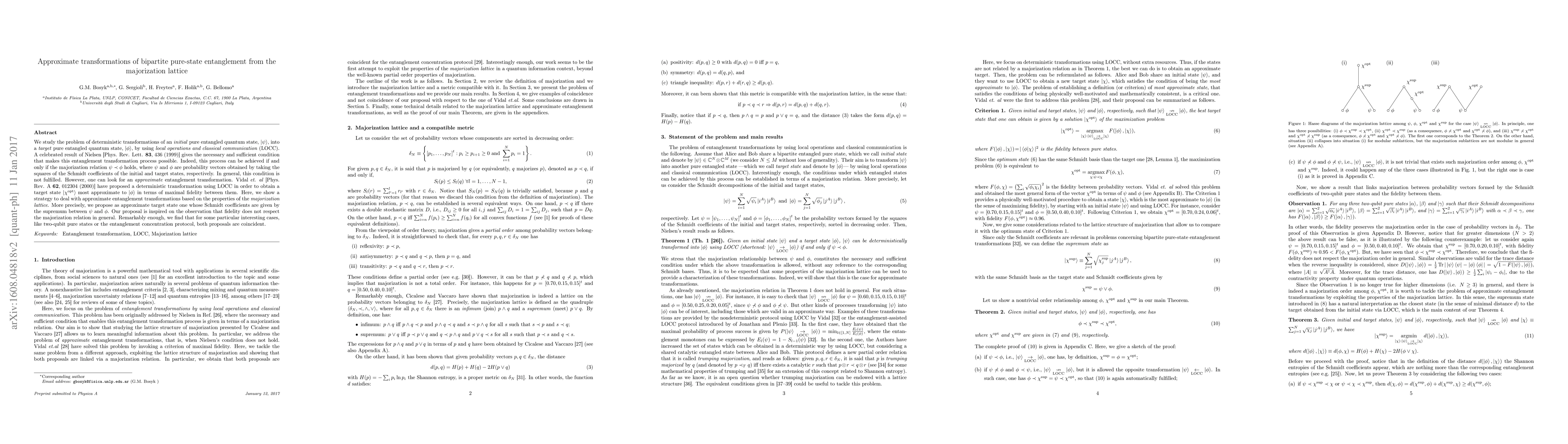 This paper explores deterministic transformations of bipartite pure-state entanglement using local operations and classical communication (LOCC). It proposes an approximate transformation strategy based on the majorization lattice, suggesting an approximate target state whose Schmidt coefficients are the supremum between the initial and target states, addressing cases where fidelity does not respect majorization.