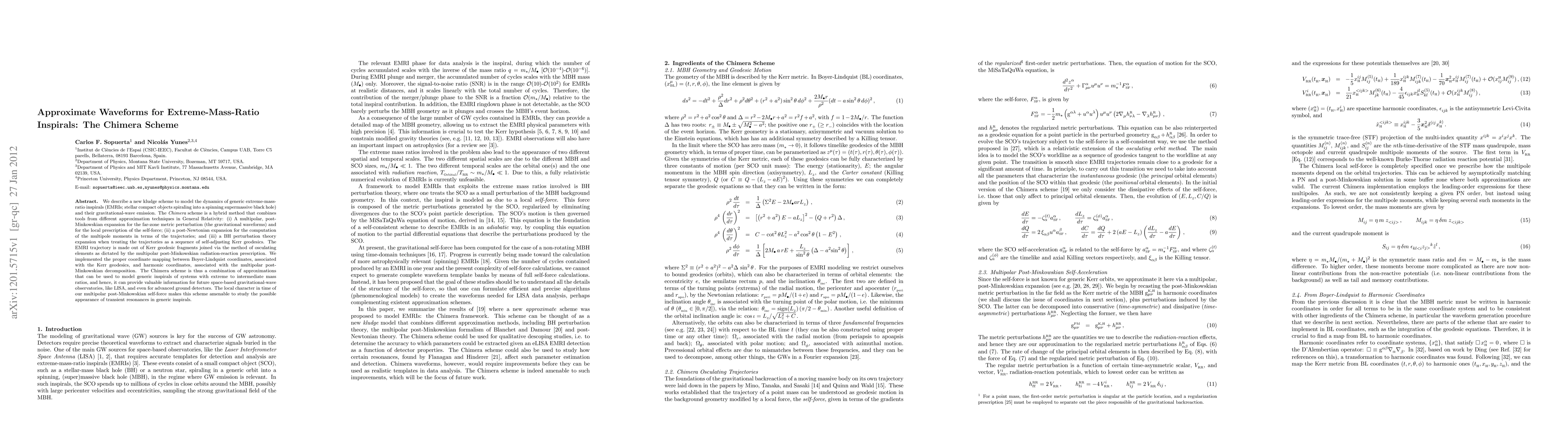 The Chimera scheme is a hybrid method combining various approximation techniques to model extreme-mass-ratio inspirals (EMRIs) and their gravitational-wave emission, providing valuable data for future gravitational-wave observatories like LISA. It integrates multipolar post-Minkowskian, post-Newtonian, and BH perturbation theory expansions to simulate the dynamics of inspirals with extreme to intermediate mass ratios.