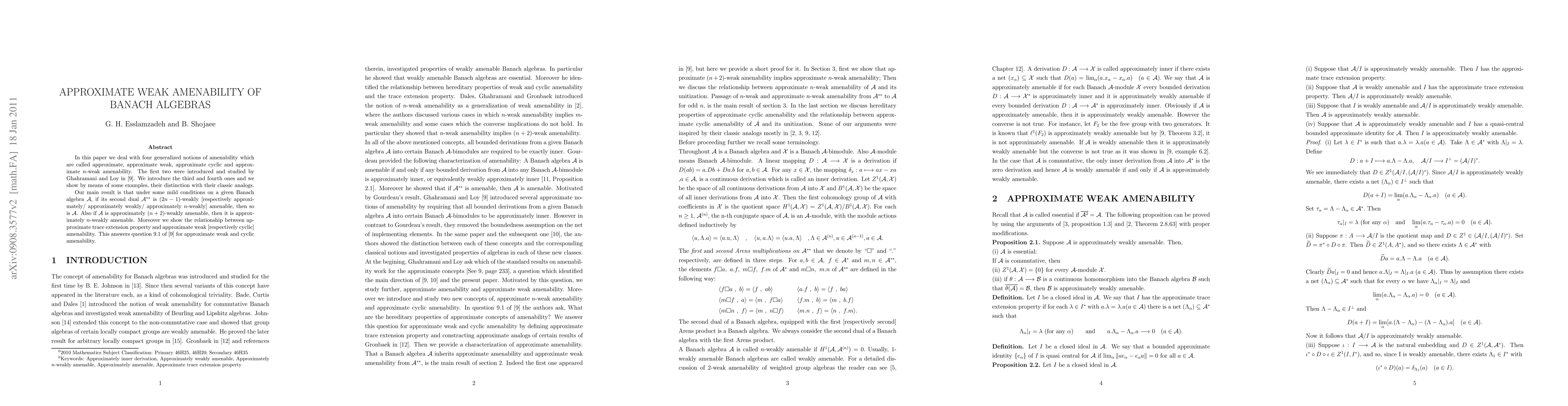 This paper introduces new notions of approximate amenability for Banach algebras and distinguishes them from classical amenability concepts. The main result establishes a connection between the approximate weak amenability of a Banach algebra and its second dual, providing conditions under which these properties transfer between the algebra and its dual.