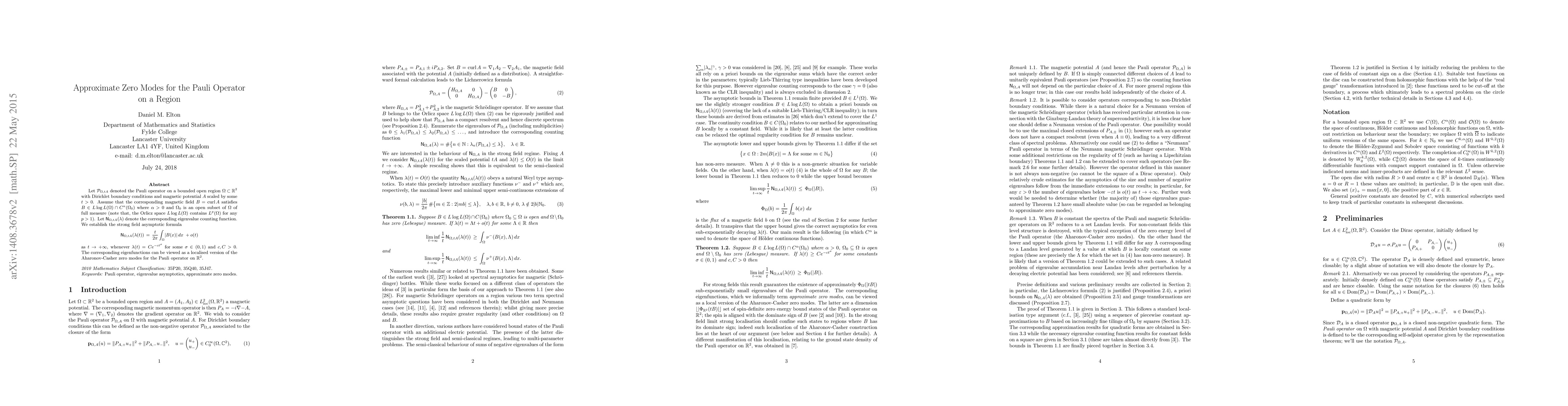Let $\mathcal{P}_{\Omega,tA}$ denoted the Pauli operator on a bounded open region $\Omega\subset\mathbb{R}^2$ with Dirichlet boundary conditions and magnetic potential $A$ scaled by some $t>0$. Assume that the corresponding magnetic field $B=\mathrm{curl}\,A$ satisfies $B\in L\log L(\Omega)\cap C^\alpha(\Omega_0)$ where $\alpha>0$ and $\Omega_0$ is an open subset of $\Omega$ of full measure (note that, the Orlicz space $L\log L(\Omega)$ contains $L^p(\Omega)$ for any $p>1$). Let $\mathsf{N}_{\Omega,tA}(\lambda)$ denote the corresponding eigenvalue counting function. We establish the strong field asymptotic formula \[ \mathsf{N}_{\Omega,tA}(\lambda(t))=\frac{t}{2\pi}\int_{\Omega}\lvert B(x)\rvert\,dx\;+o(t) \] as $t\to+\infty$, whenever $\lambda(t)=Ce^{-ct^\sigma}$ for some $\sigma\in(0,1)$ and $c,C>0$. The corresponding eigenfunctions can be viewed as a localised version of the Aharonov-Casher zero modes for the Pauli operator on $\mathbb{R}^2$.
