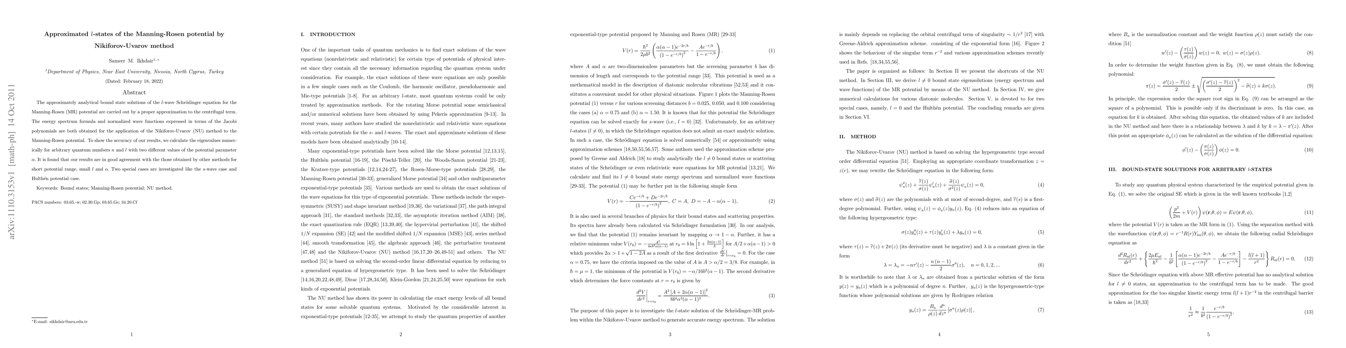 The research provides approximate analytical solutions for the Schrödinger equation with the Manning-Rosen potential using the Nikiforov-Uvarov method, yielding energy spectra and wave functions expressed in Jacobi polynomials. Numerical validation shows high accuracy for small quantum numbers and potential parameters.