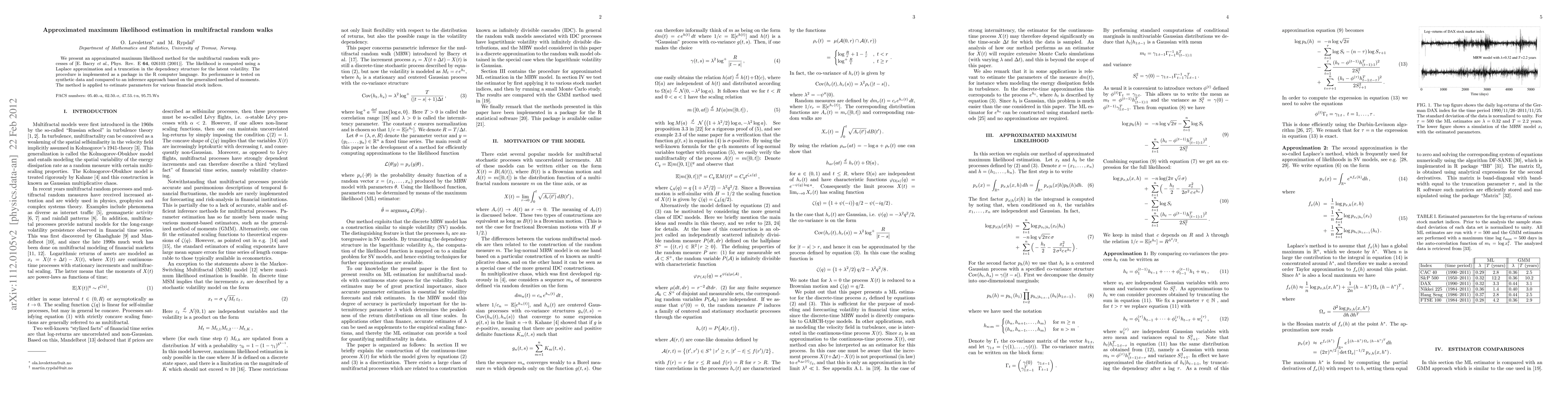 This paper introduces an approximated maximum likelihood method for estimating parameters in multifractal random walk processes, implemented in R and tested against synthetic data and a generalized method of moments approach, demonstrating its application to financial stock indices.