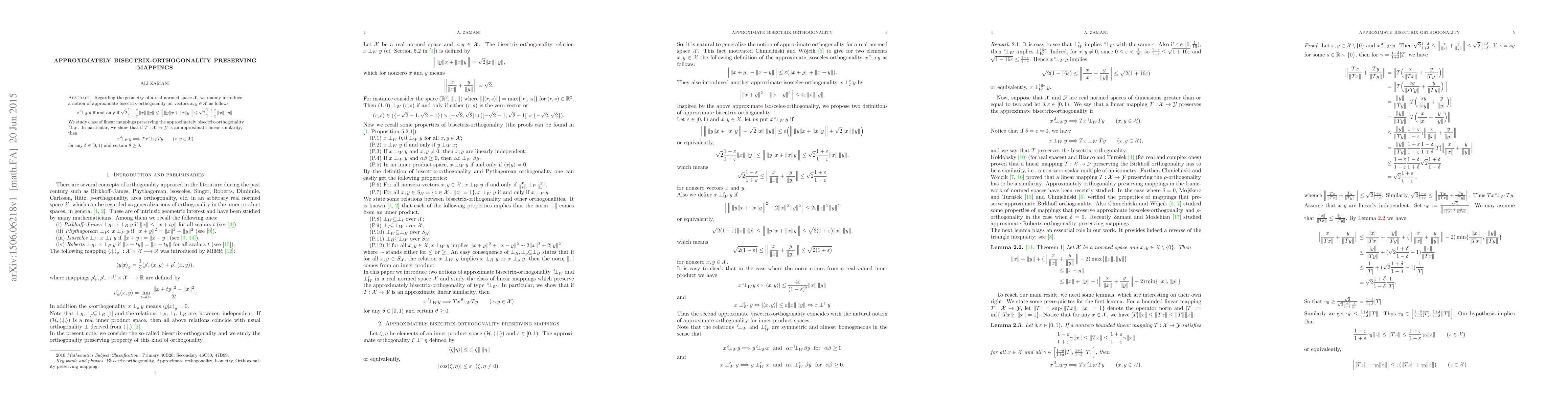 This paper explores linear mappings that preserve a notion of approximate bisectrix-orthogonality in real normed spaces, with implications for similarity transformations.