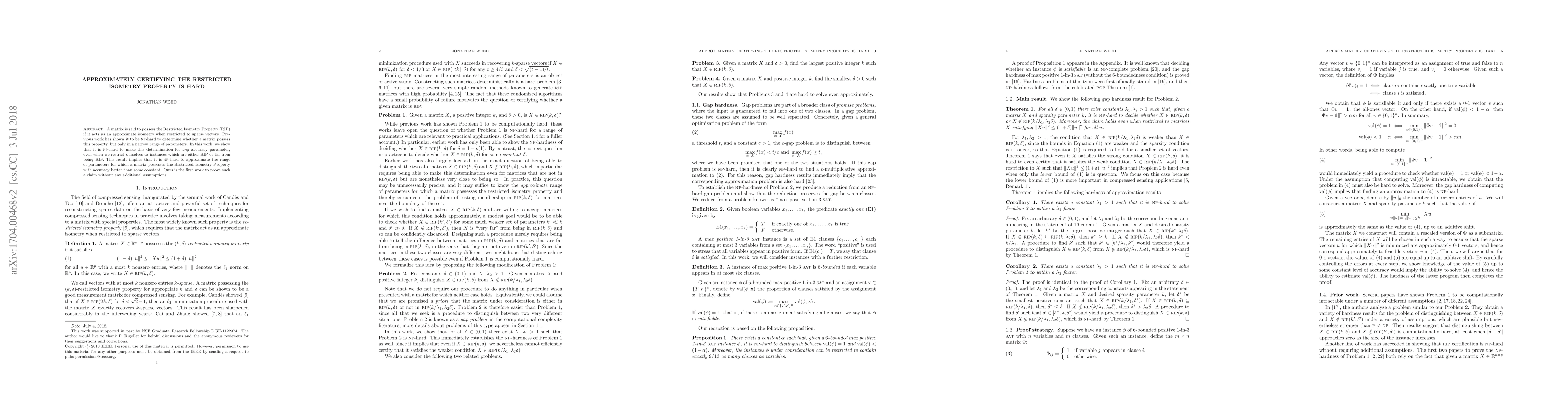 This paper demonstrates that determining whether a matrix possesses the Restricted Isometry Property (RIP) is NP-hard for any accuracy parameter, even when restricted to matrices that are either RIP or far from being RIP. This implies that approximating the range of parameters for which a matrix has the RIP is also NP-hard.