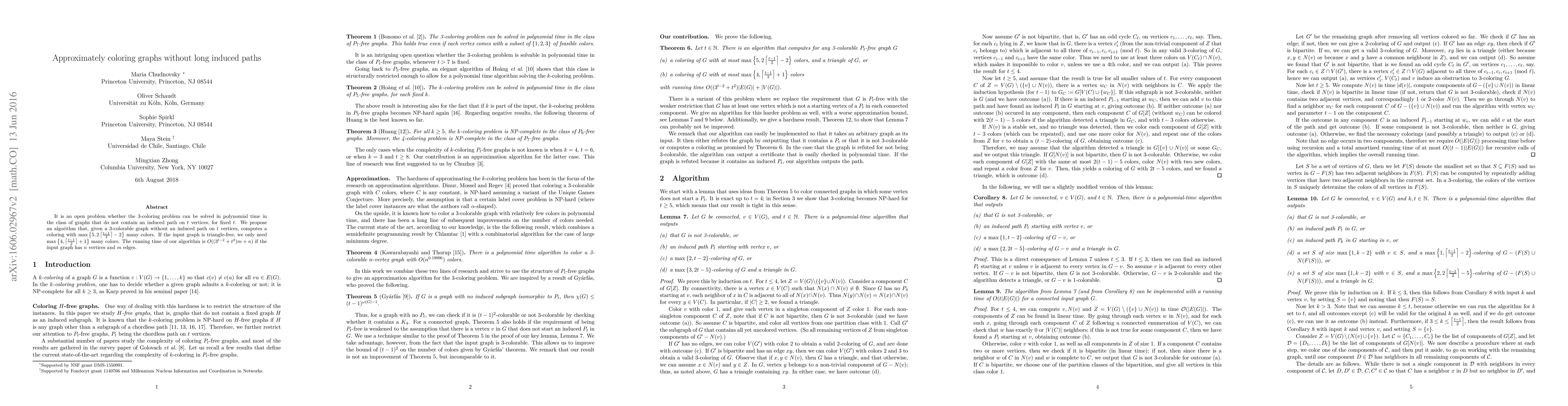 This paper proposes an algorithm to color 3-colorable graphs without long induced paths using a specific number of colors, with a running time of $O((3^{t-2}+t^2)m+n)$. The algorithm uses $\max\{5,2\lceil{\frac{t-1}{2}}\rceil-2\}$ colors for general graphs and $\max\{4,\lceil{\frac{t-1}{2}}\rceil+1\}$ colors for triangle-free graphs.