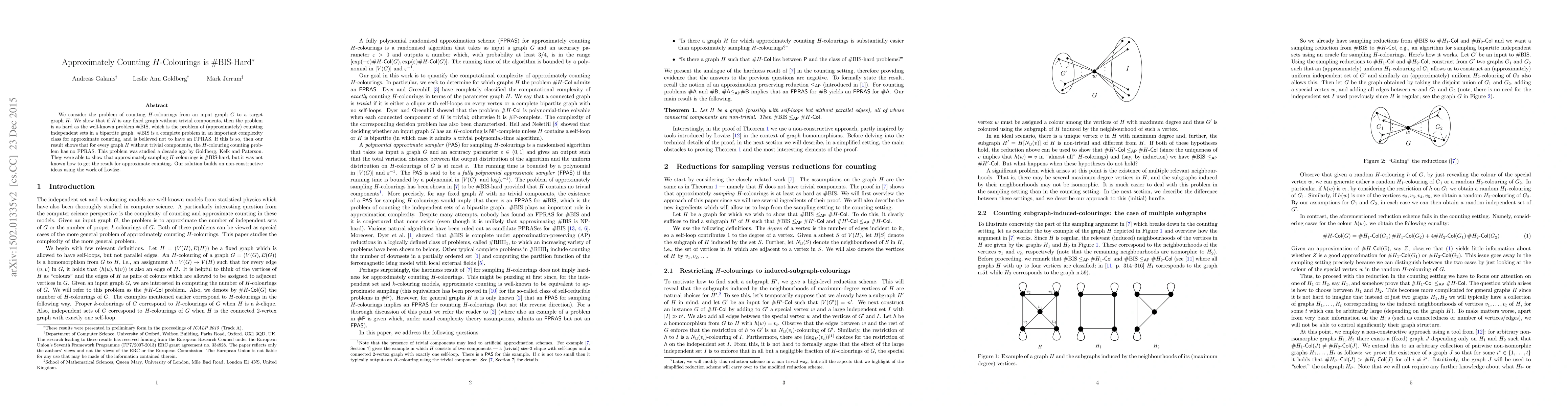 This paper proves that counting H-colourings in a graph G to a target graph H is as hard as the #BIS problem, which involves counting independent sets in bipartite graphs. This result indicates that there likely exists no FPRAS for the H-colouring counting problem when H has no trivial components.