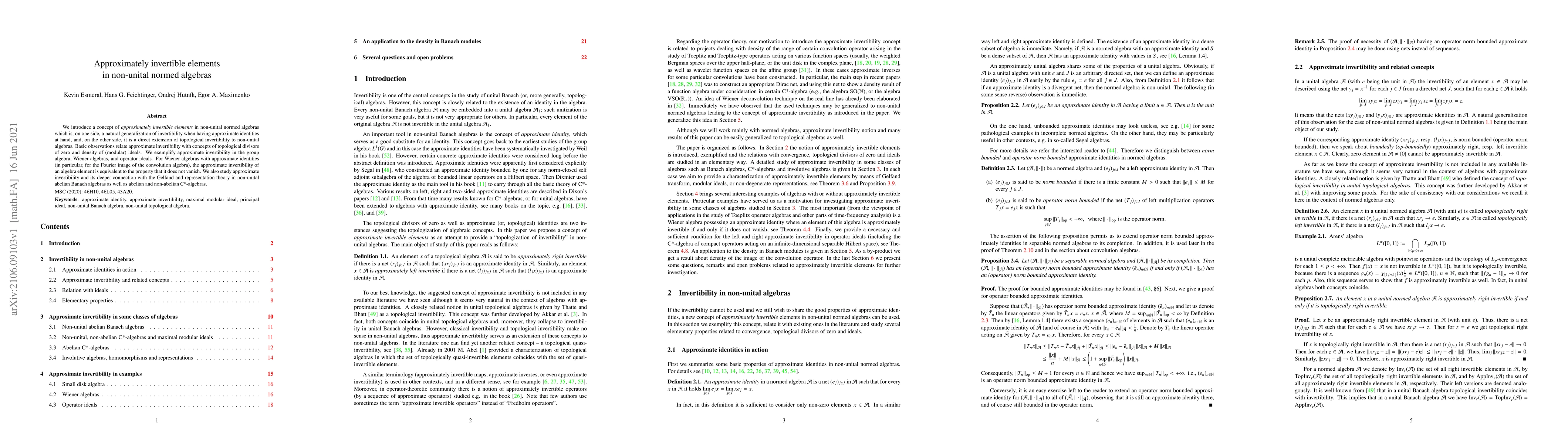 This research paper introduces a concept of approximate invertibility in non-unital normed algebras, exploring its connections to topological divisors of zero, density of ideals, and representation theory.