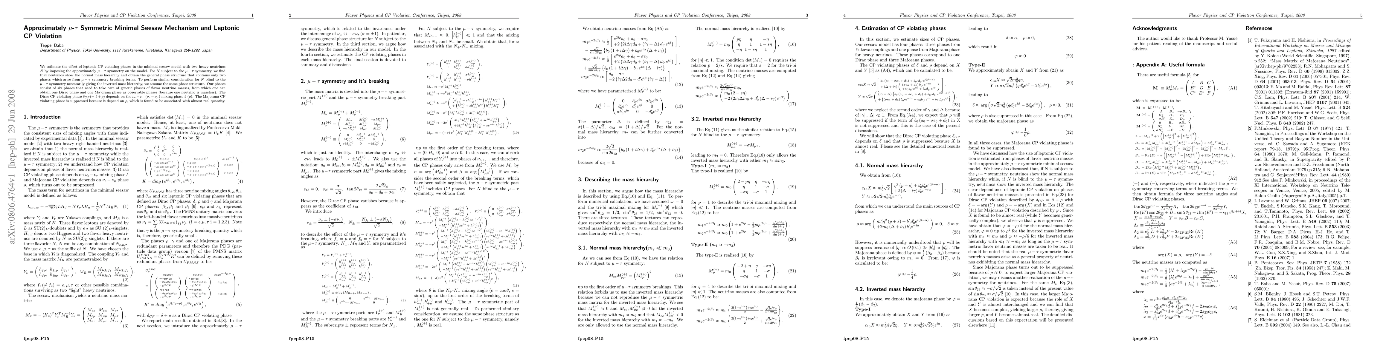 This paper explores the minimal seesaw mechanism with two heavy neutrinos under an approximate $\mu-\tau$ symmetry, revealing a normal mass hierarchy and two CP-violating phases. For neutrinos without $\mu-\tau$ symmetry, it predicts an inverted mass hierarchy with six CP-violating phases, yielding one Dirac and one suppressed Majorana phase.