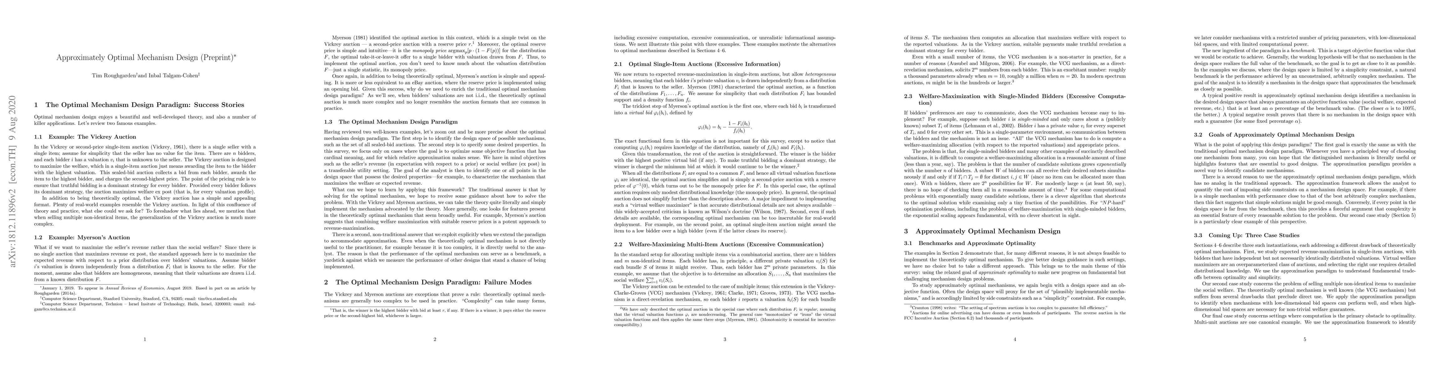 A survey of optimal mechanism design reveals that traditional approaches can be ill-suited for certain problems due to high communication, computation, or informational requirements, leading researchers to explore approximately optimal mechanisms.