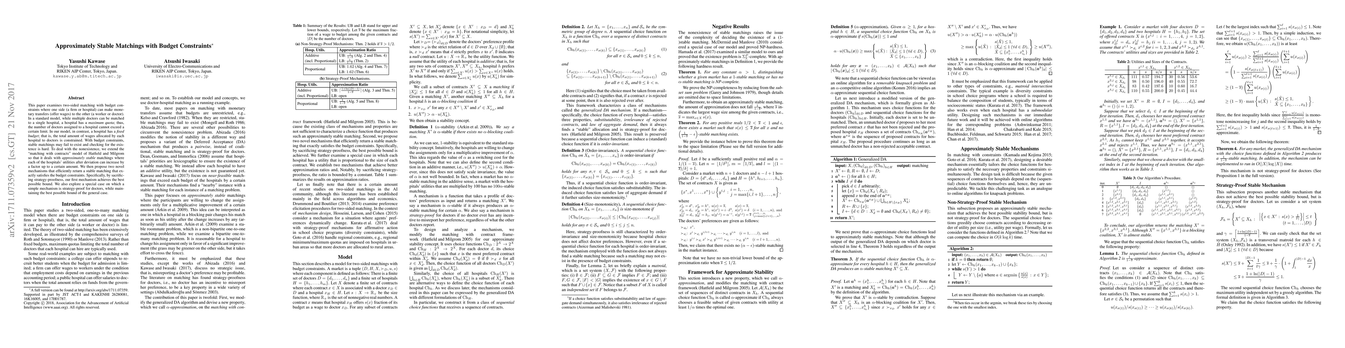 This paper explores two-sided matching with budget constraints, proposing mechanisms to achieve approximately stable matchings when exact stable matchings may not exist due to budget limits. It introduces novel mechanisms to satisfy budget constraints while addressing the trade-off between strategy-proofness and efficiency.