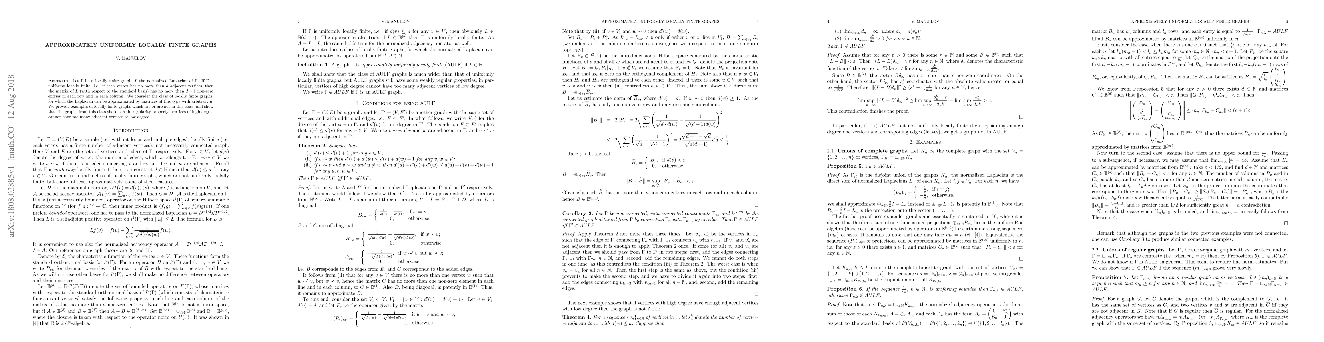 This research introduces a class of locally finite graphs approximated by matrices with limited non-zero entries per row/column, regardless of vertex degree. Examples of such graphs are provided, highlighting a regularity property where high-degree vertices can't have many low-degree neighbors.