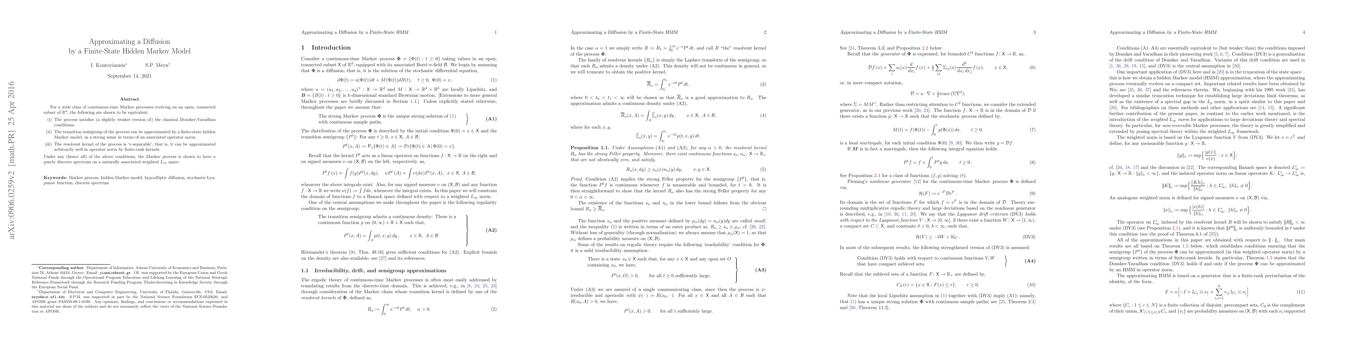 A research paper shows that certain continuous-time Markov processes can be approximated by finite-state hidden Markov models, leading to a purely discrete spectrum on a weighted L_infinity space.
