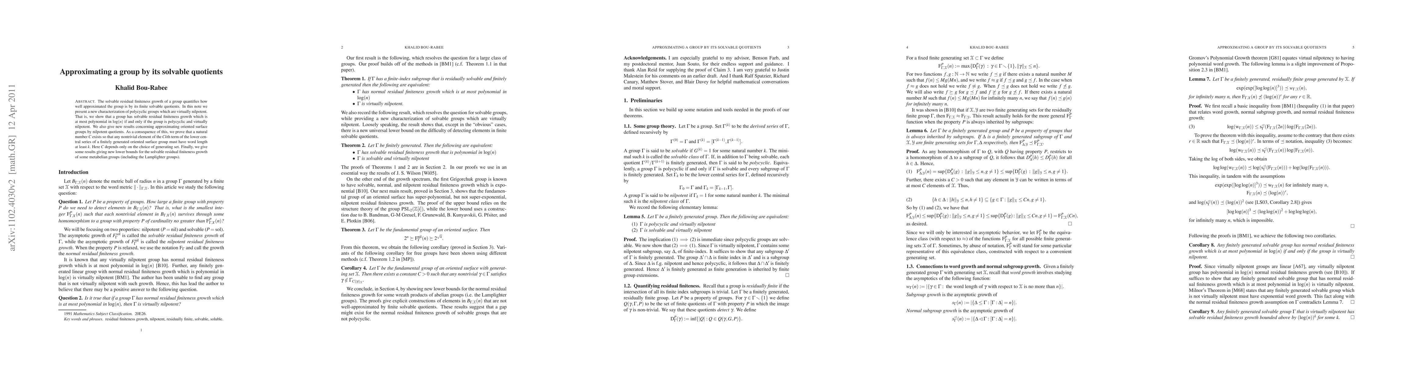 The solvable Farb growth of a group quantifies how well-approximated the group is by its finite solvable quotients. In this note we present a new characterization of polycyclic groups which are virtually nilpotent. That is, we show that a group has solvable Farb growth which is at most polynomial in $\log(n)$ if and only if the group is polycyclic and virtually nilpotent. We also give new results concerning approximating oriented surface groups by nilpotent quotients. As a consequence of this, we prove that a natural number $C$ exists so that any nontrivial element of the $Ck$th term of the lower central series of a finitely generated oriented surface group must have word length at least $k$. Here $C$ depends only on the choice of generating set. Finally, we give some results giving new lower bounds for the solvable Farb growth of some metabelian groups (including the Lamplighter groups).